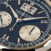 Lange presented the platinum Datograph reference 403.035 at the Basel Fair in a small stand shared with brothers IWC and JLC in 1999. There was not a giant watch in the stand, as was tradition but a gigantic movement model, just to increase the racing heartbeat of the Swiss competitors and to give them the opportunity to closely examine what they would have to face.