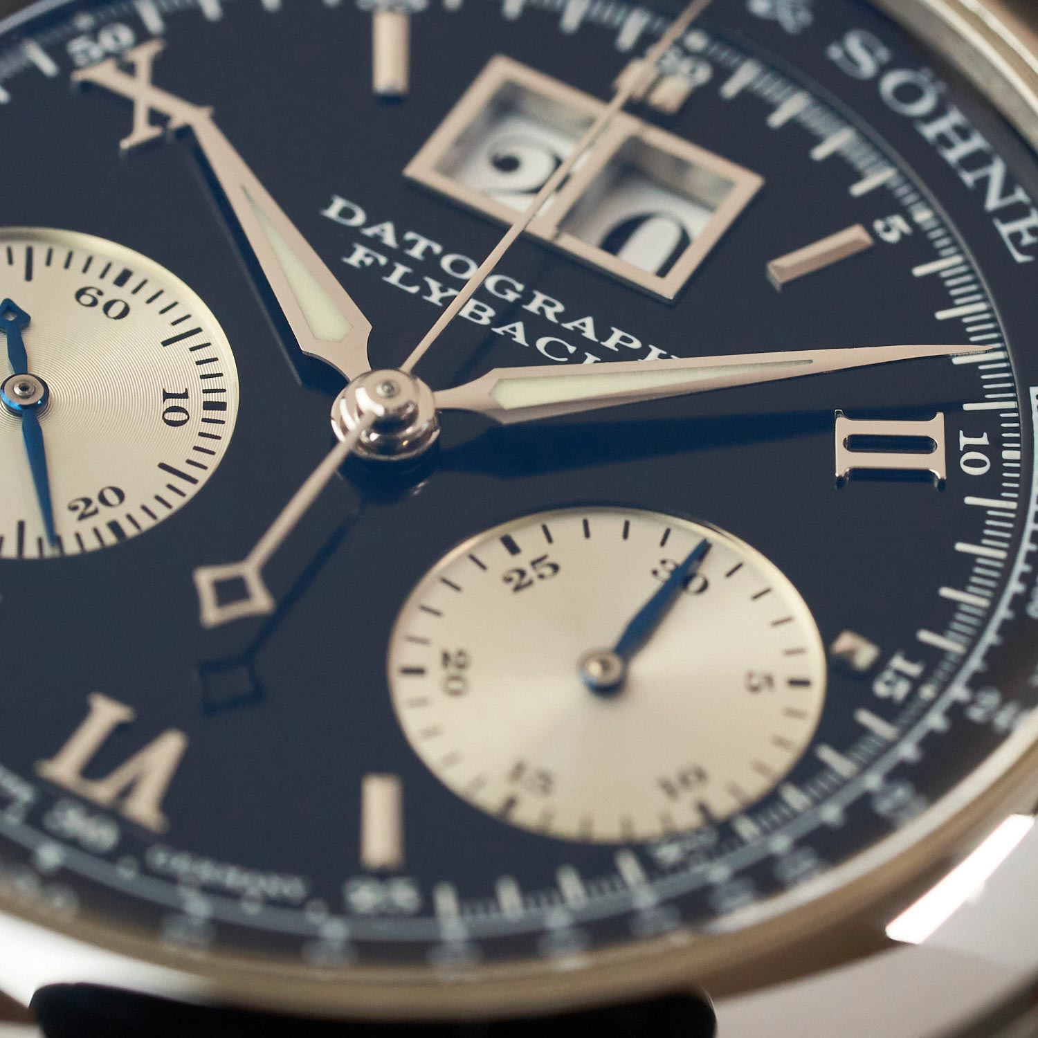 Classified words are one of the best-known linguistic practices in German. These are words that are formed by combining a pair of words like Fingerspitzengefühl – Finger/Spitzen/Gefühl. So, as a German company, Lange also followed the language and created the name Datograph – Date + chronograph.