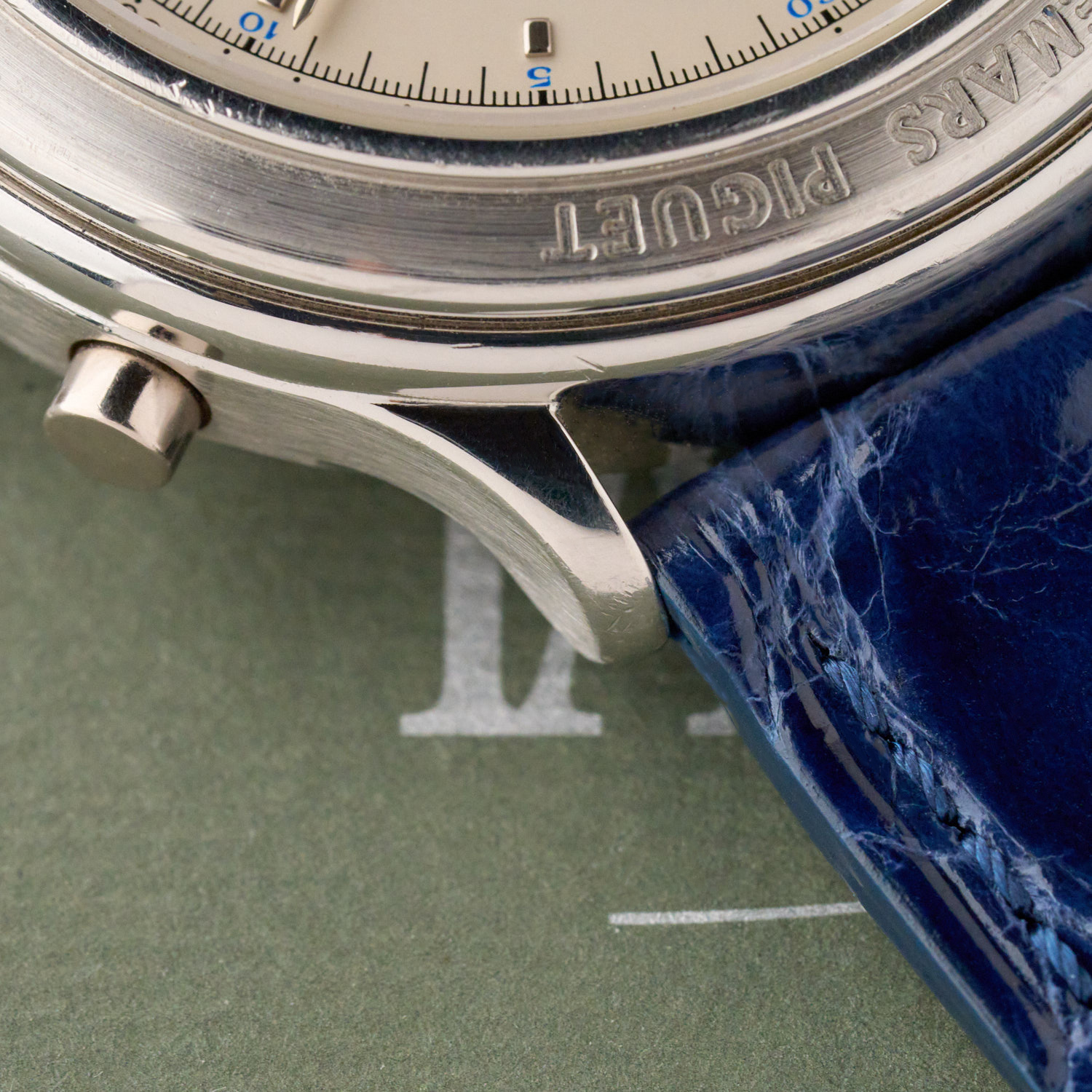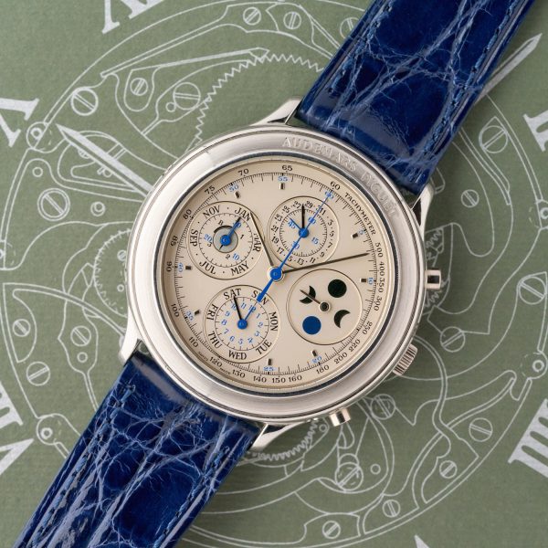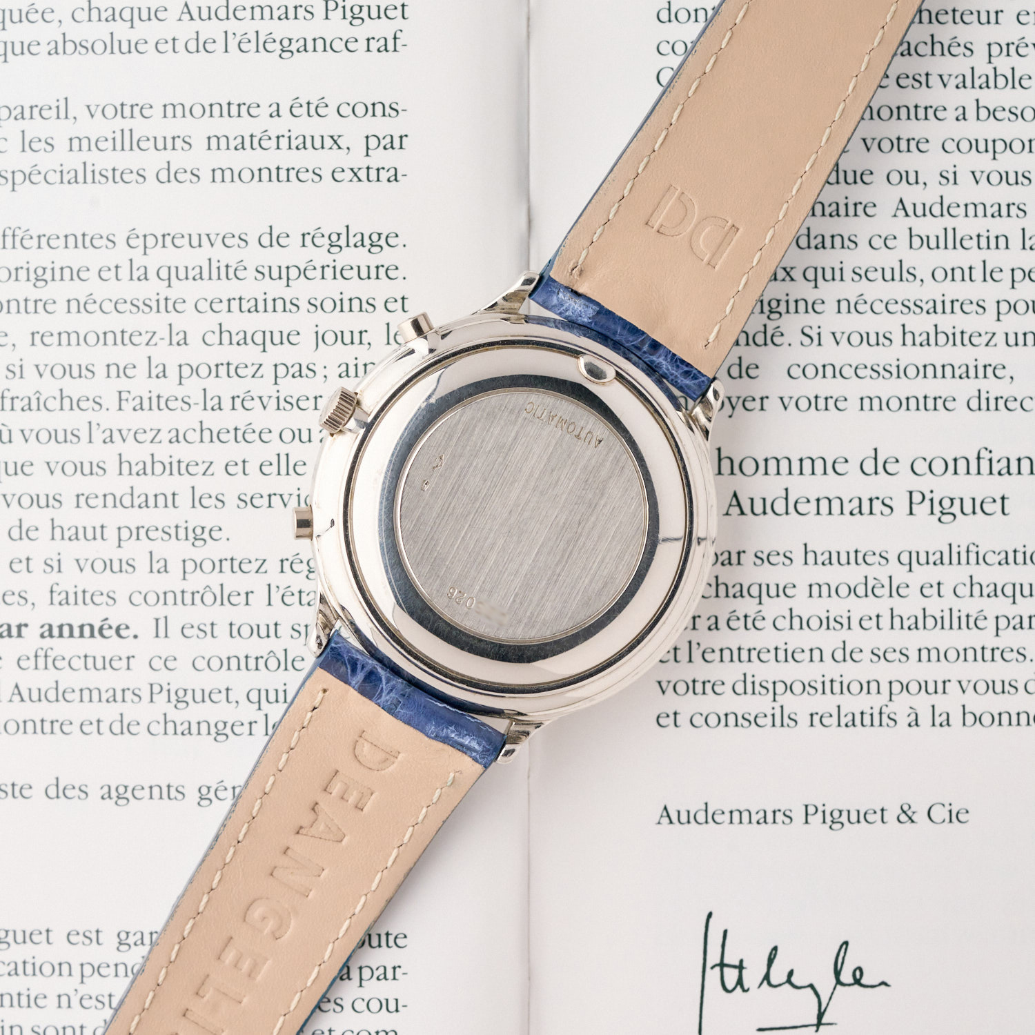 In 1986, Audemars Piguet achieved a historic milestone by seamlessly integrating self-winding capability, chronograph mechanism and date display into a single timepiece with the introduction of the calibre 2126/2840. Initially without a specific collection name, these watches, featuring a rounded bezel adorned with the Audemars Piguet engraving, would later be informally labelled as “Huitième” in select catalogues from 1988 onwards, particularly for the Italian market.