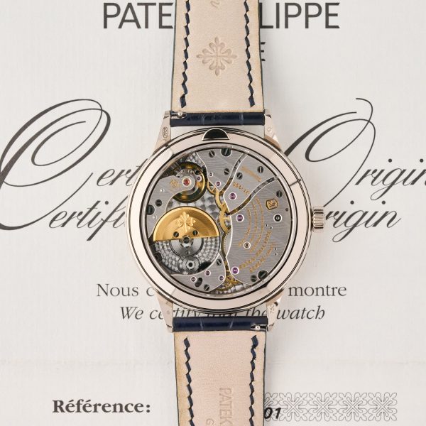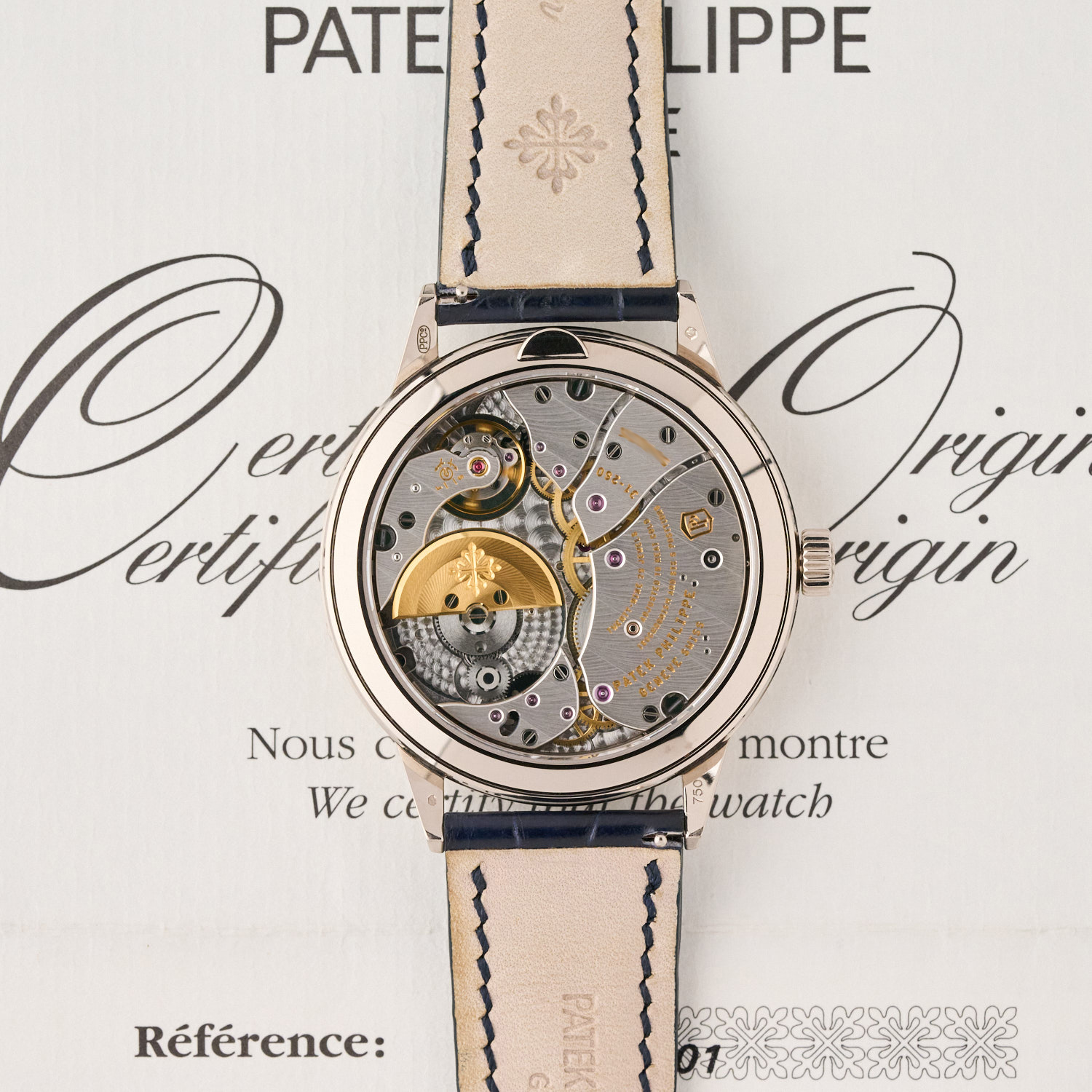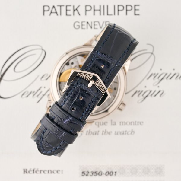 The current Patek Philippe reference 5235G with annual calendar complication has the following characteristics: