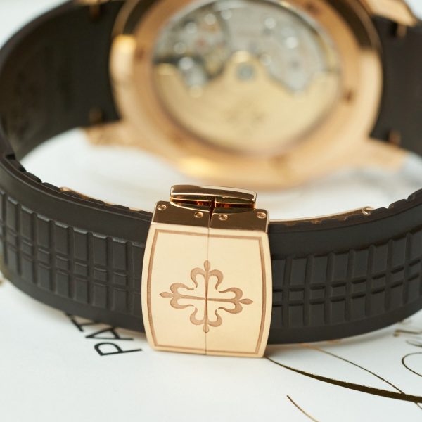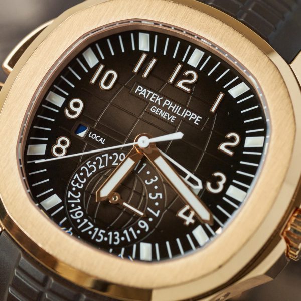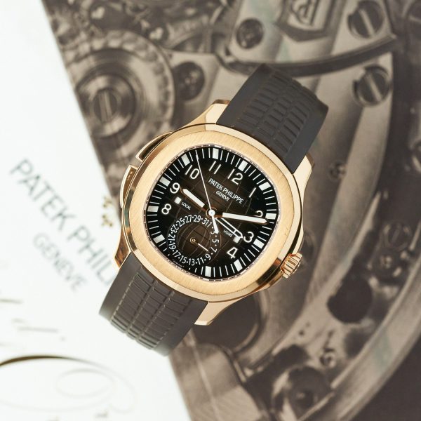 PATEK PHILIPPE AQUANAUT TRAVEL TIME REFERENCE 5164R – 18K ROSE GOLD – BROWN RUBBER BRACELET – FULL SET