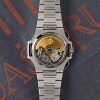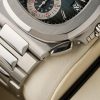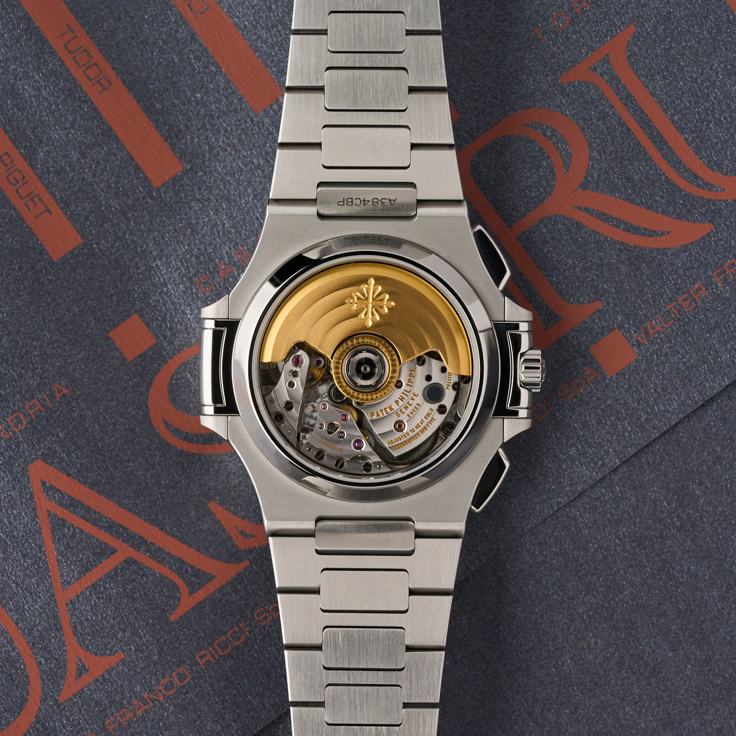 The history of the Patek Philippe Nautilus begins with the reference 3700. During the Basel fair in 1976, inspired by new ideas and concepts undertaken a few years earlier by other haute horlogerie houses, Patek Philippe produced and presented a steel model, unusual for the time and of large dimensions (42mm) and with guaranteed water resistance to 60 meters of depth. The design and realization of the drawing were the result of the genius of Gerald Genta. The reference 5980 introduces the chronograph complication to the most iconic line.