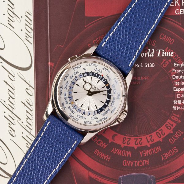 Patek Philippe World Time 5130G – 18K White Gold – Silver Guilloché Inner Dial – Full Set