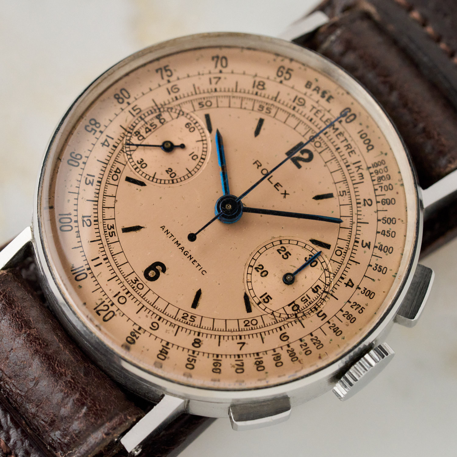 Salmon dial with Tachymeter and Telemeter scales