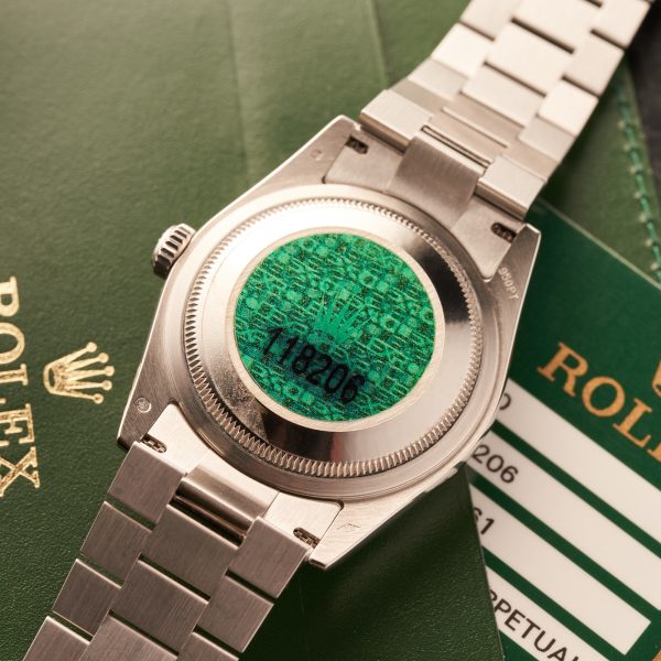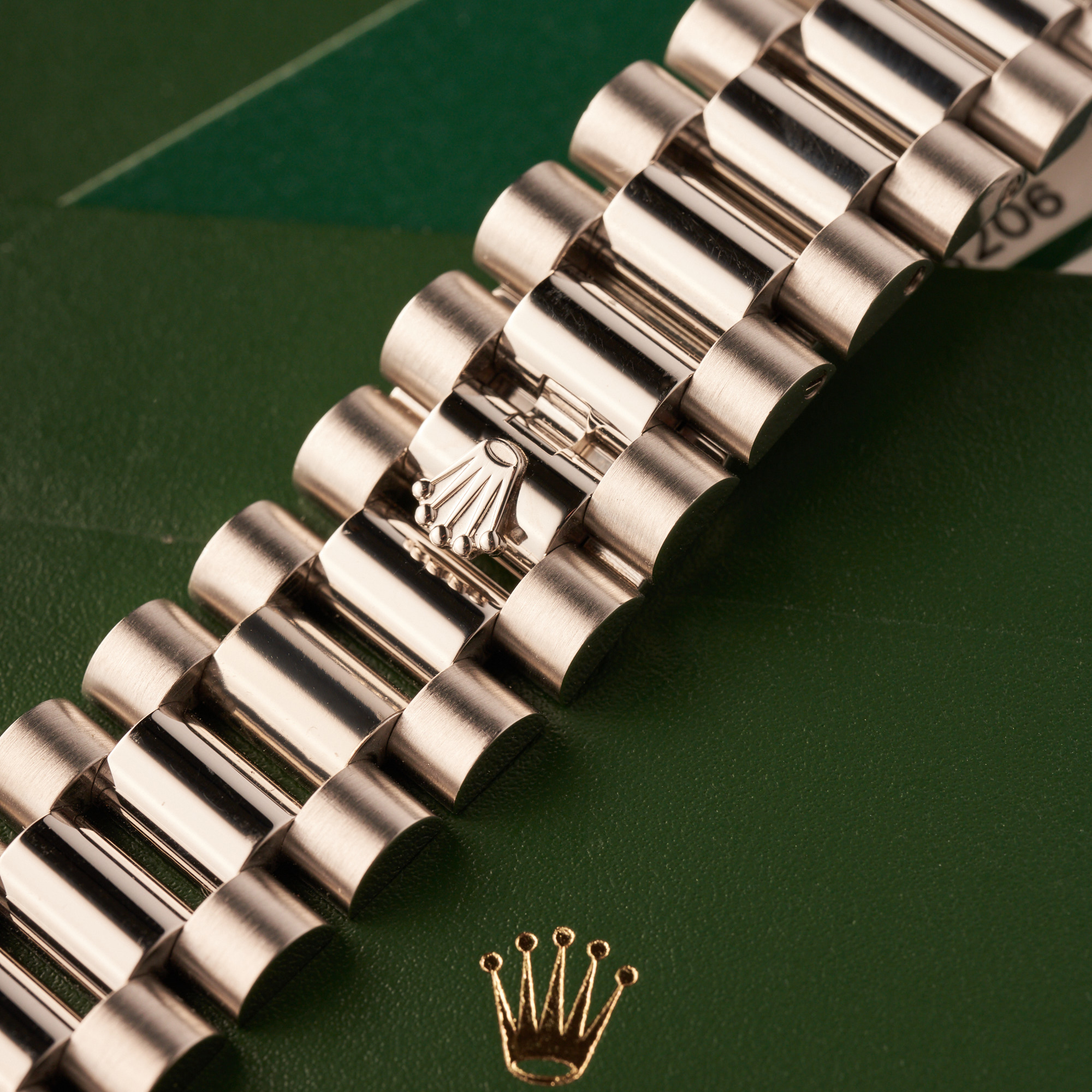 This rare and precious Vintage Day-Date Reference 118206 watch boasts the following features: