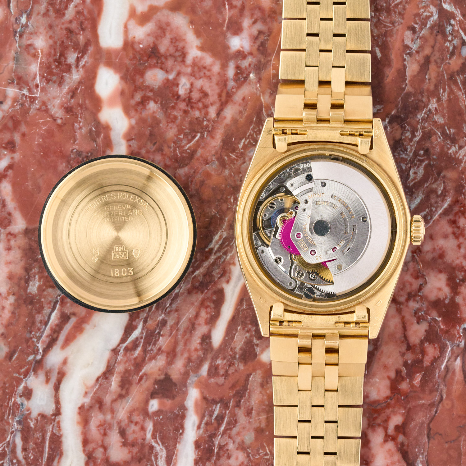 This rare example of Rolex Day-Date reference 1803 boasts the following features: