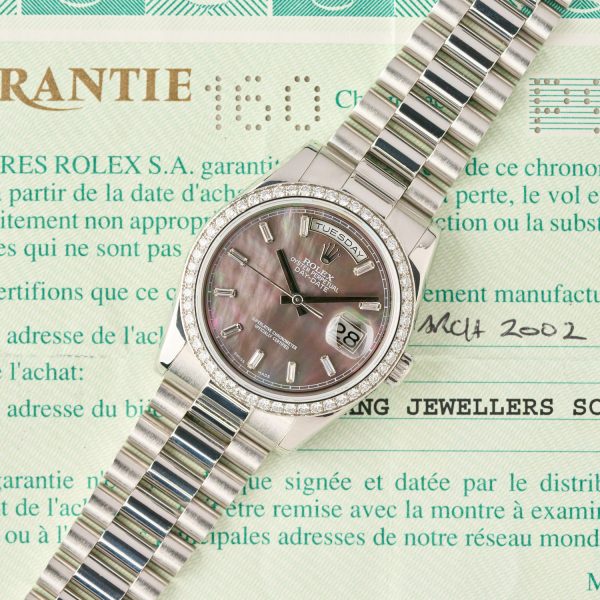 Commonly nicknamed the "President", the Rolex Day-Date acquired this nickname from a targeted marketing action by the brand, namely giving a Day-Date to Dwight Eisenhower, then President of the United States of America. Rolex, through its marketing actions at the time, quoted the following phrase: "The men who lead the history of the world wear Rolex watches". Since then, the Day-Date models have been considered among the most prestigious in the Rolex collection, often adapting to surprising and exclusive configurations and combinations of materials.