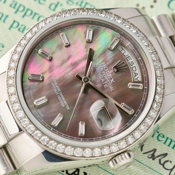 This rare example of Rolex Day-Date reference 118346 boasts the following features: