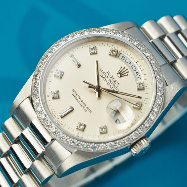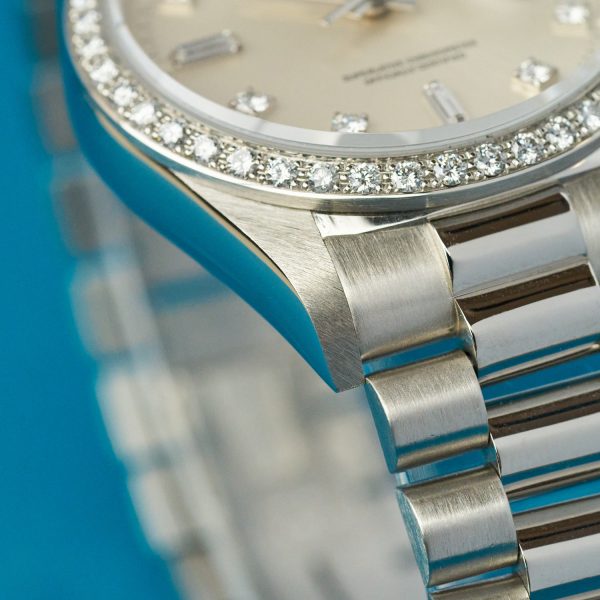 Rolex Day-Date Platinum 18346 – Silver Diamonds Dial and Factory Diamond Bezel – Rolex Warranty