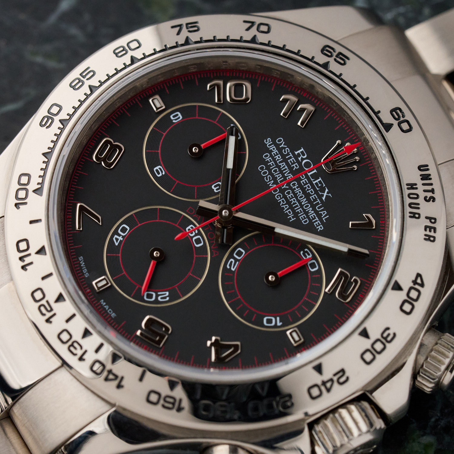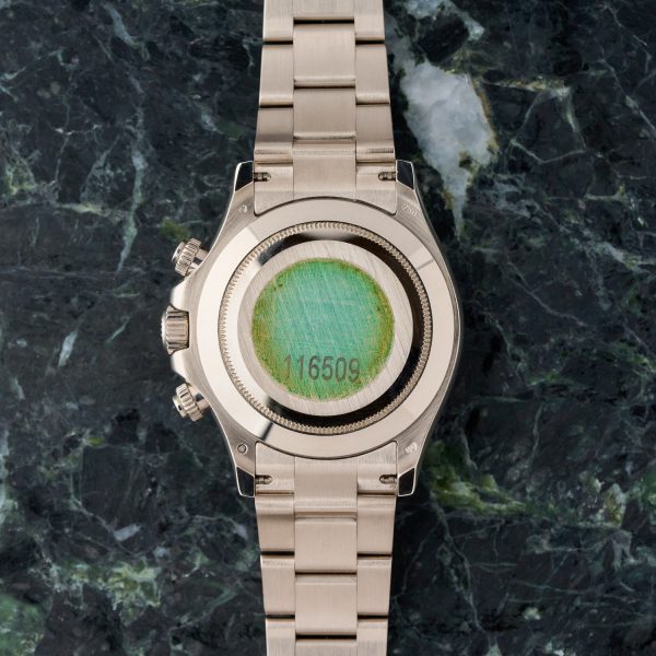 This rare example of Rolex Daytona reference 116509 has the following characteristics: