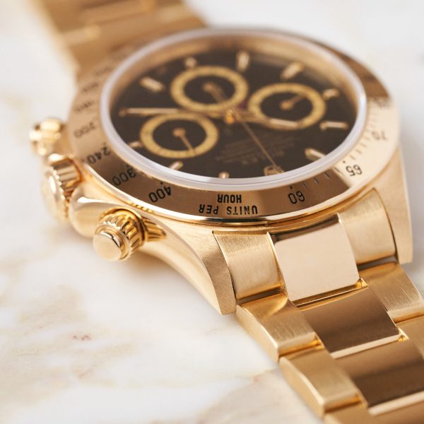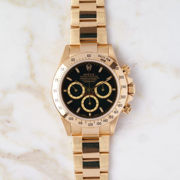 ROLEX DAYTONA 16528 ZENITH MOVEMENT 18K YELLOW GOLD WITH BLACK 6 REVERSED DIAL