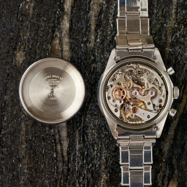 One of the most famous and iconic Rolex models is the Cosmograph Daytona. In 1963 Rolex launched the first Cosmograph model which marked the beginning of a must-have among collectors. The current reference 6241 was the second equipped with a pump pusher after the reference 6239 but in this case it had a black bezel.