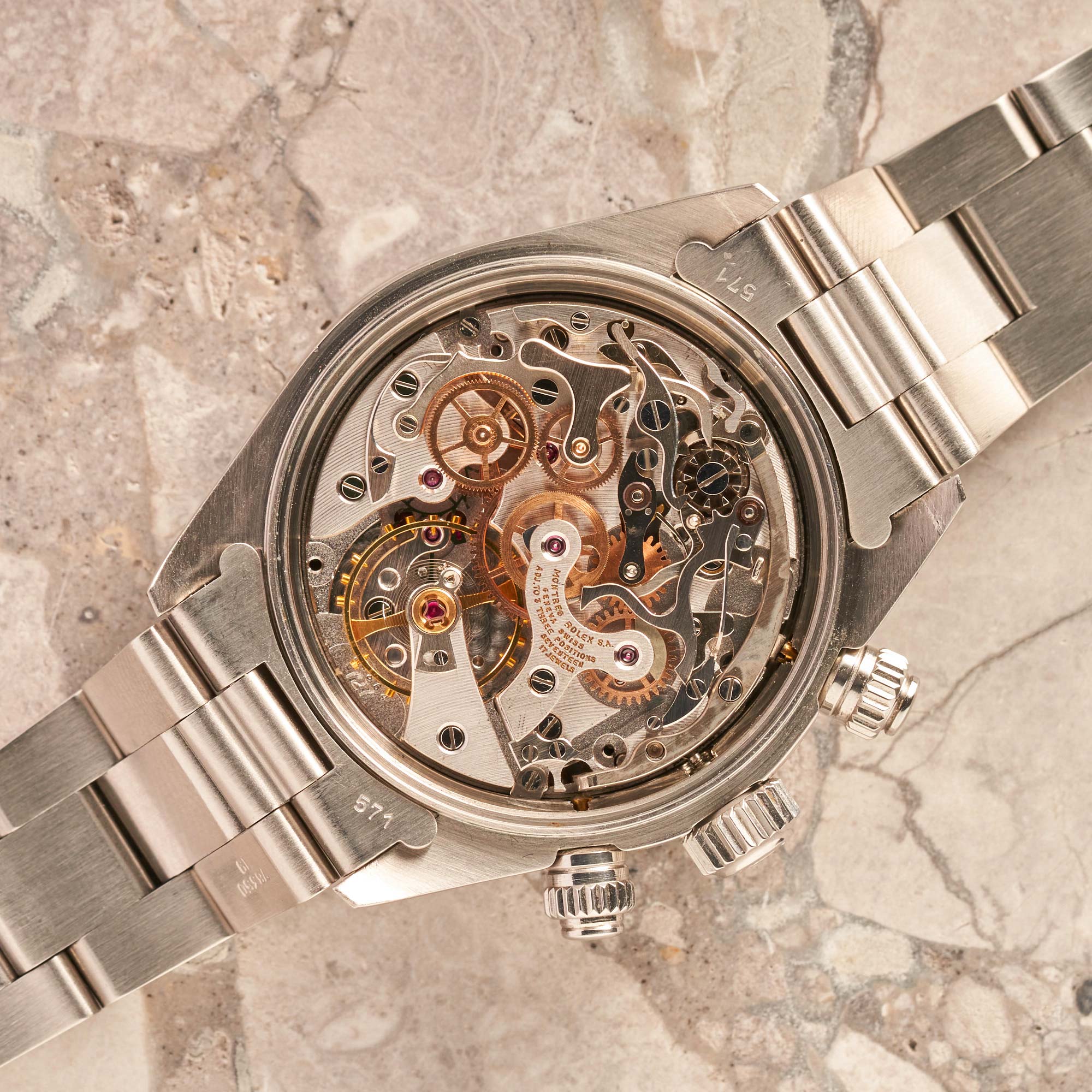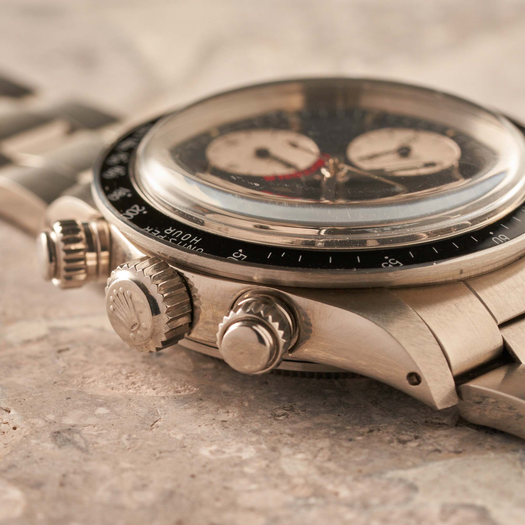 This luxury Rolex Daytona reference 6263 Scritta Rossa model has the following features: