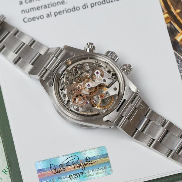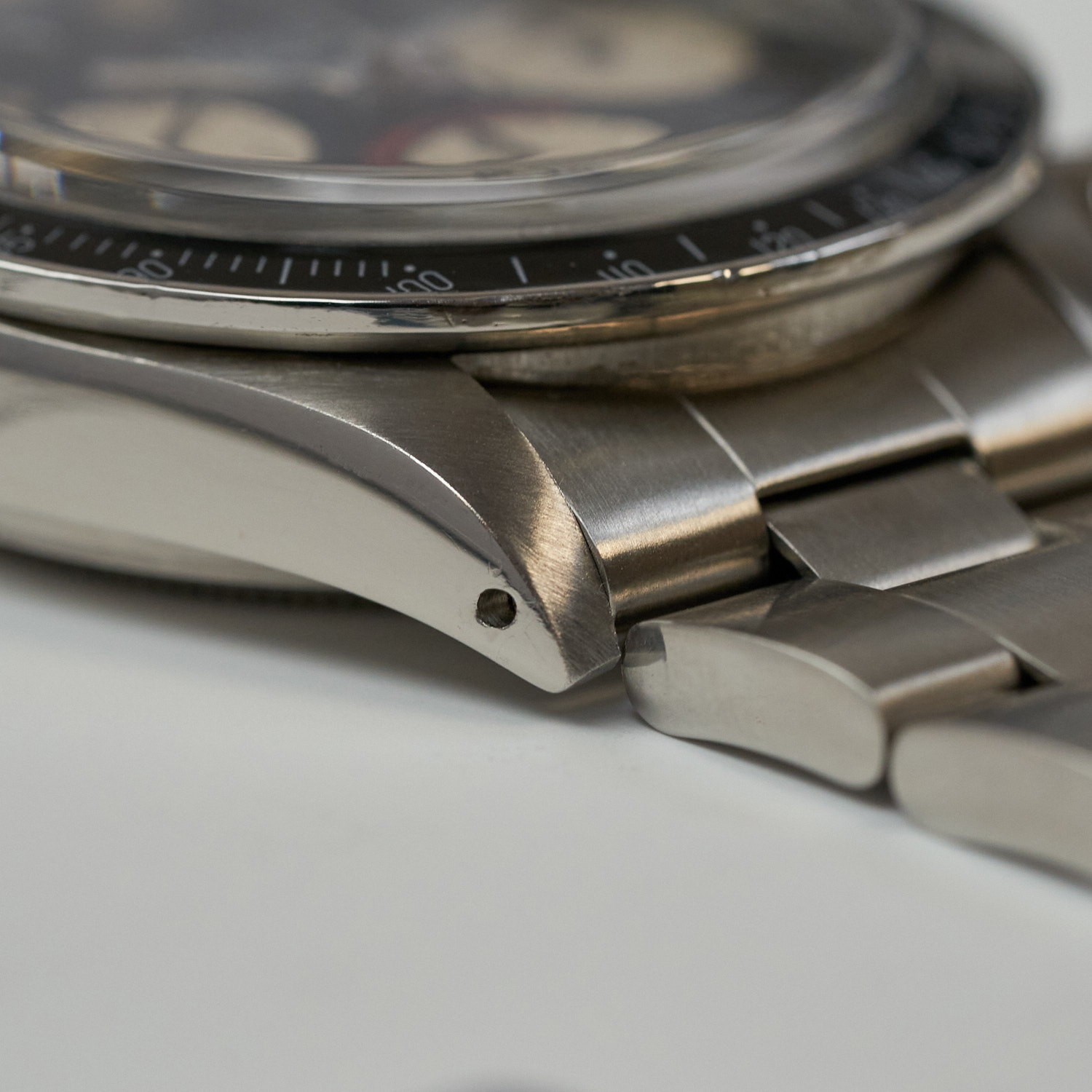 This luxury Rolex Daytona reference 6263 Scritta Rossa model has the following features: