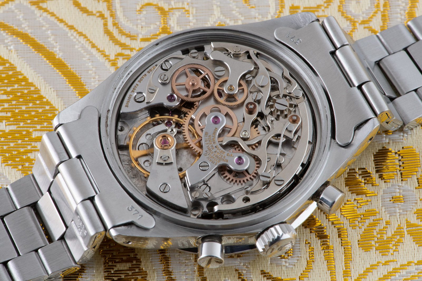 The Rolex Daytona ref. 6262 replaced the previous Cosmograph ref. 6239 different only regarding the movement. Characterized by the blue writing, it was produced for only three years and represents, together with the contemporary ref. 6264, the latest Rolex chronograph with pump pushers.