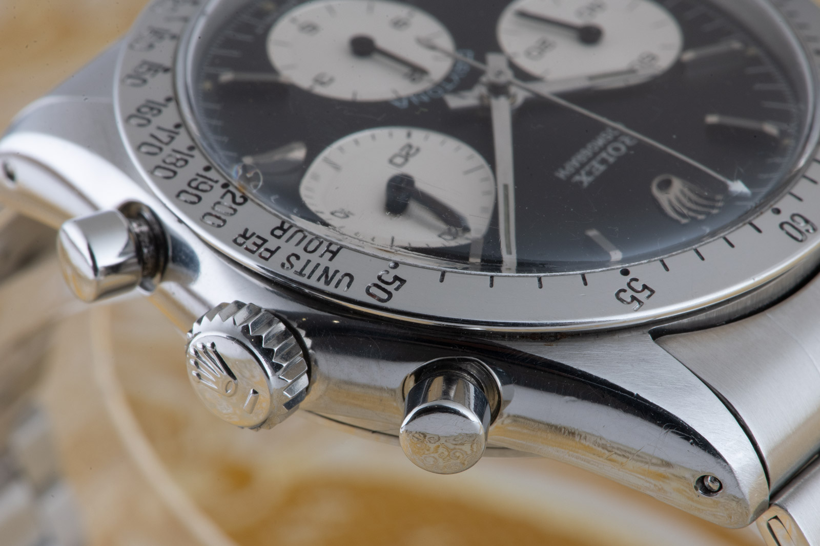 This Rolex 6262 Daytona second-hand watch displays the following features: