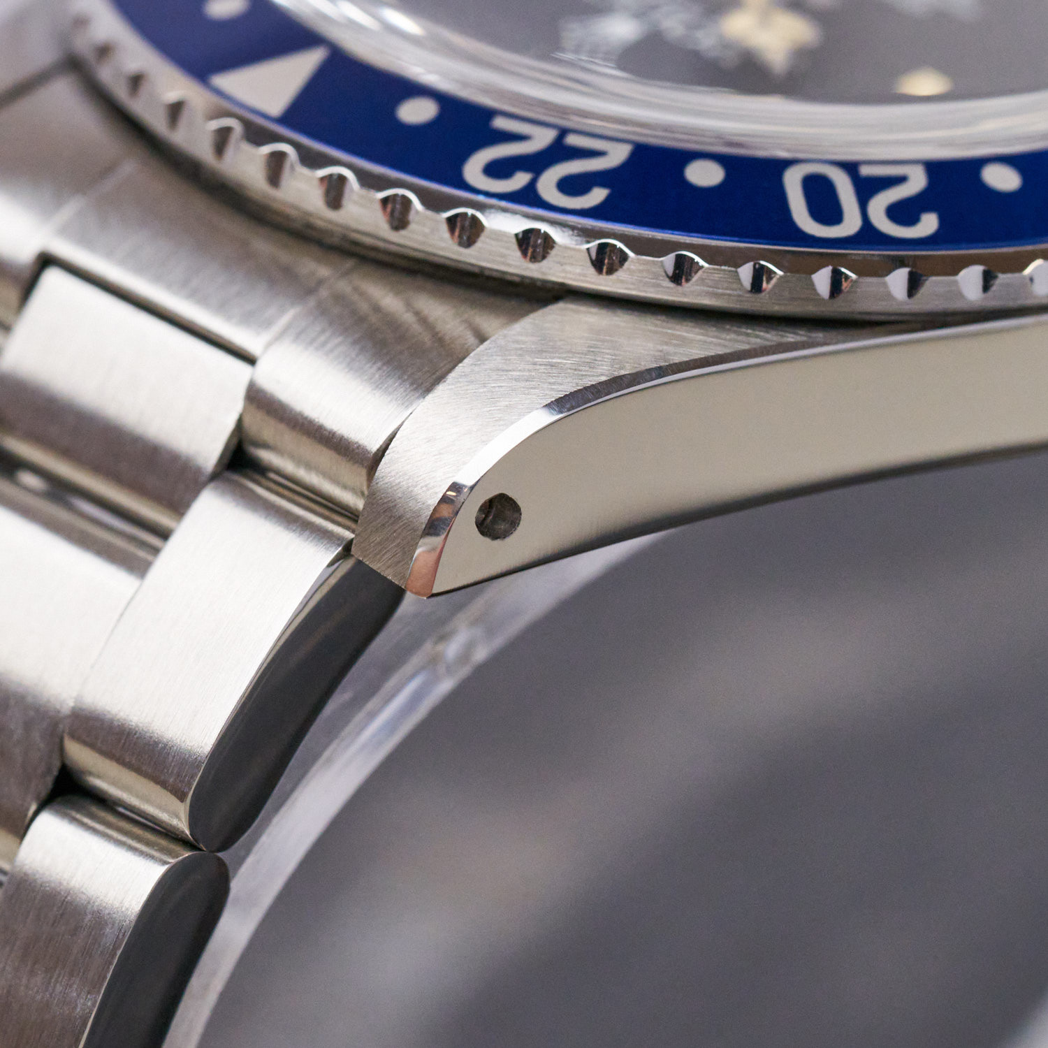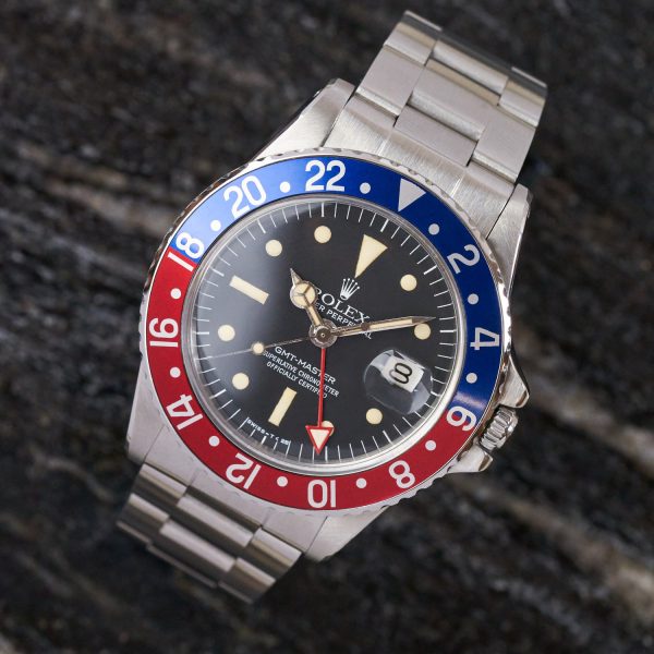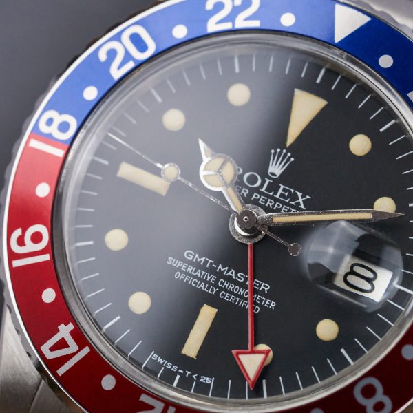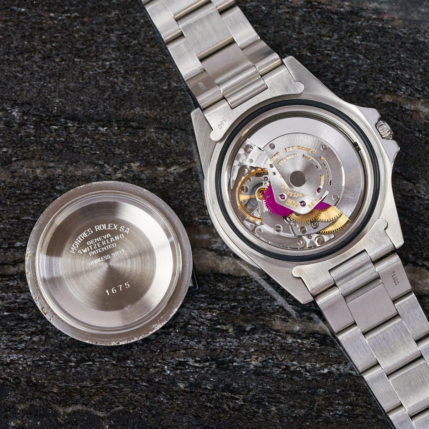 This Rolex second wrist model GMT-Master reference 1675 has the following features:
