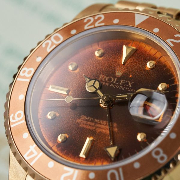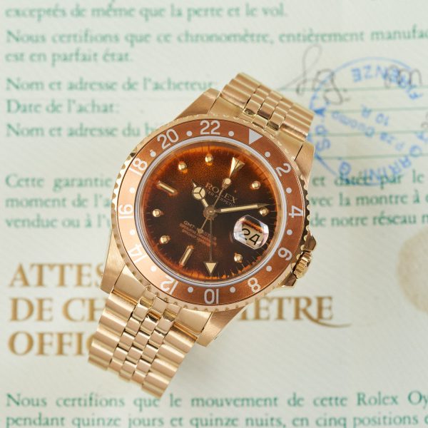 ROLEX GMT-MASTER 16758 TROPICAL DIAL 18K YELLOW GOLD JUBILEE BRACELET ROLEX WARRANTY