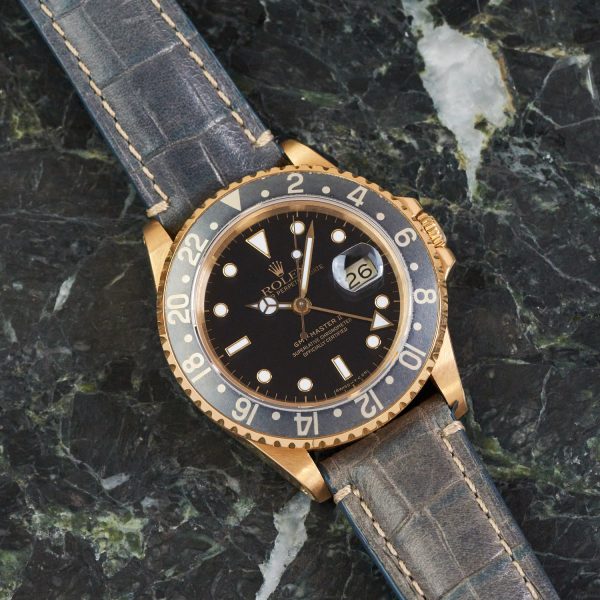 ROLEX GMT-MASTER II REFERENCE 16718 – 18K GOLD – BLACK DIAL – FADED BEZEL