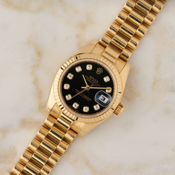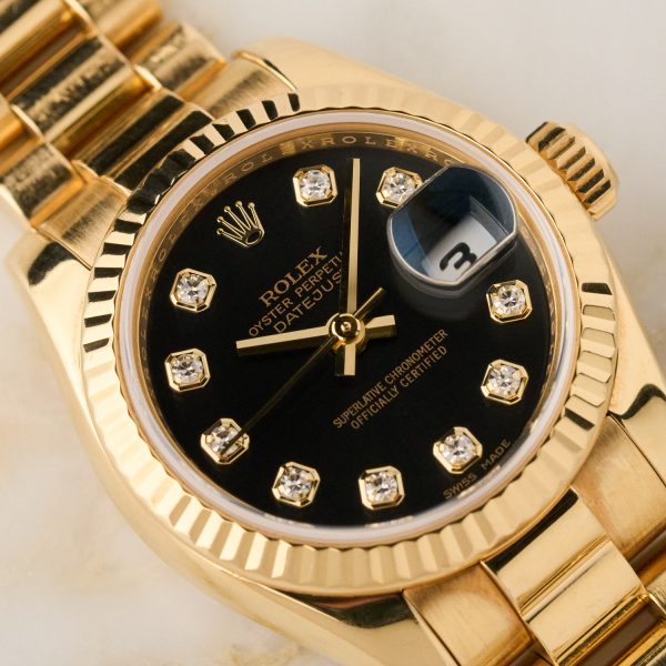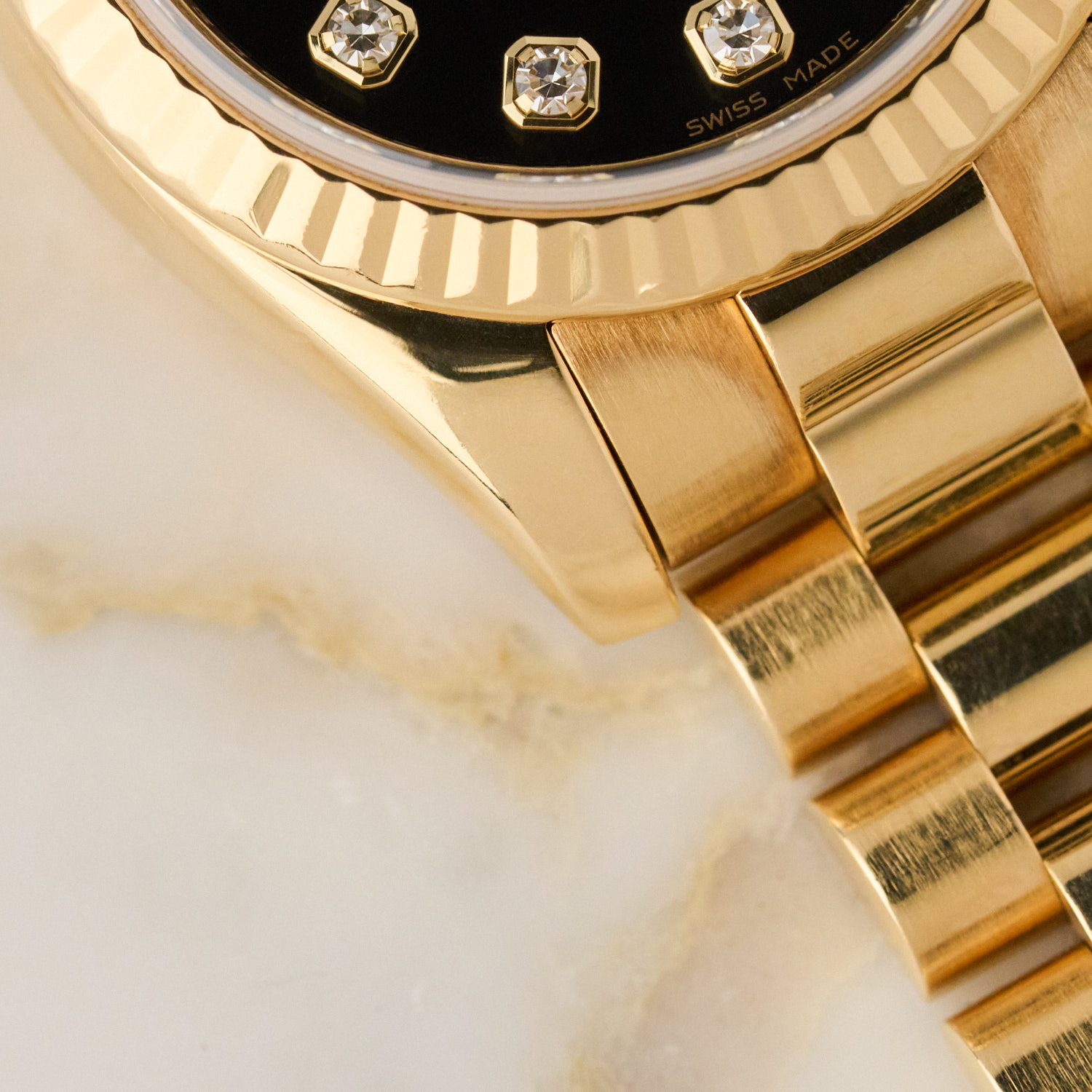 Rolex Lady-Datejust 179178 – 18K Yellow Gold – Factory Black Dial – Unpolished