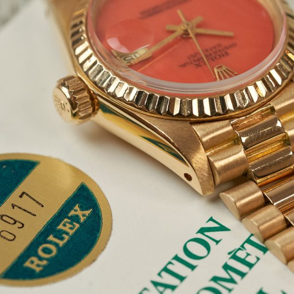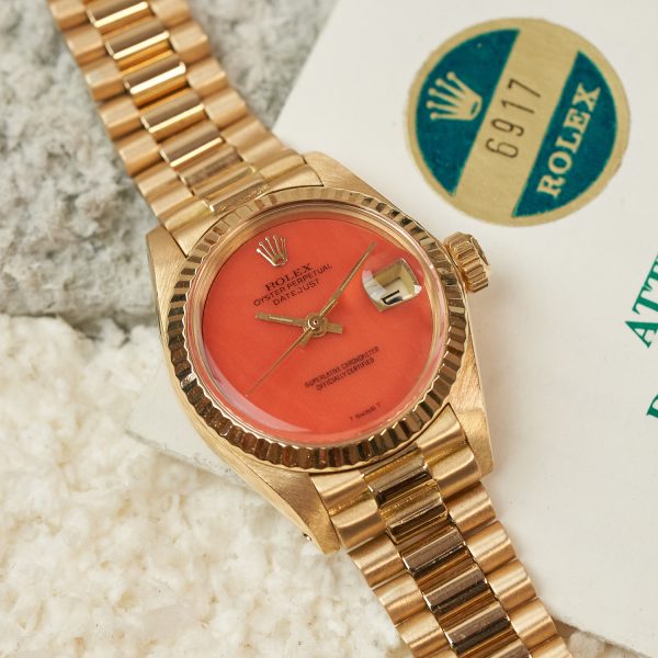 ROLEX DATEJUST REFERENCE 6917 CORAL DIAL IN 18K GOLD