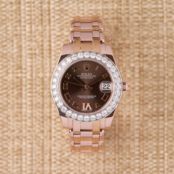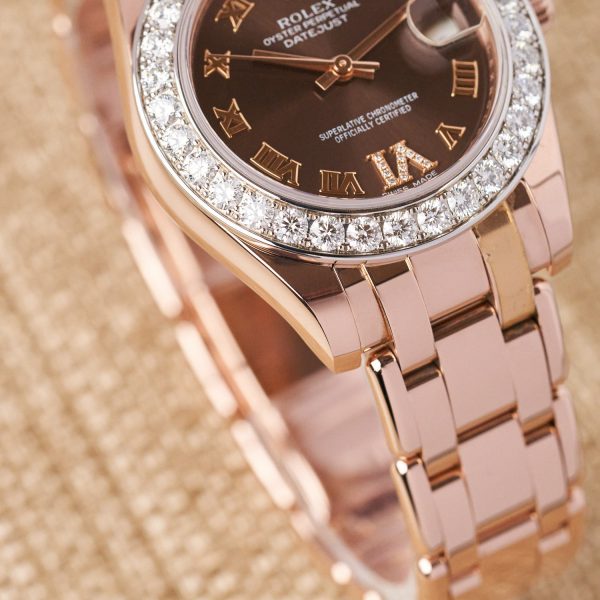 Rolex Lady-Datejust Pearlmaster 81285 – 18K Rose Gold – Brown Dial – Unpolished