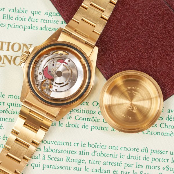 The next stage in the history of the reference is the Submariner 16808, which is the all-gold variant of the transitional ref 16800. The 1980s, with improved functionality and materials, marked the transition from the vintage Submariner to the modern generation.