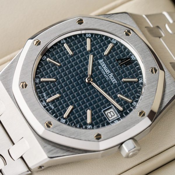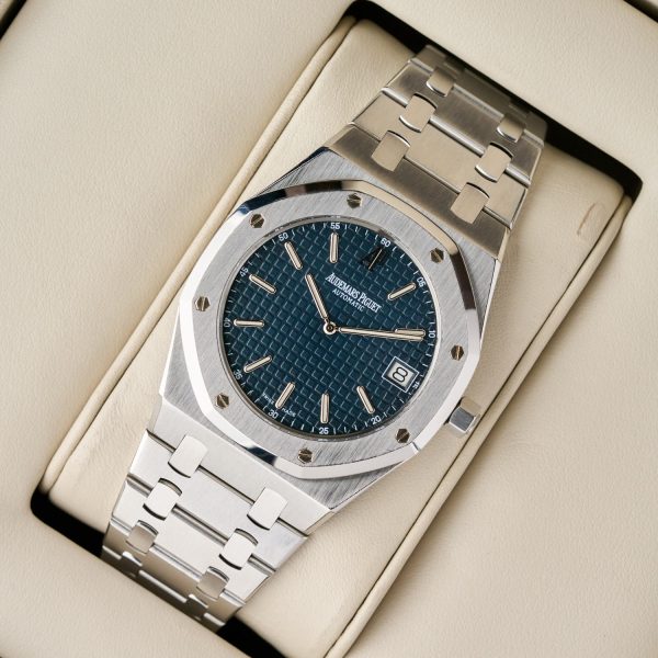 Audemars Piguet Royal Oak è considerato il mito degli orologi sportivi di lusso. Tutto ebbe inizio nei primi anni ’70 grazie al rivoluzionario Gerald Genta, sviluppando una cassa monoblocco con lunetta ottagonale installata e saldata da otto viti esagonali con l’iconico quadrante Tapisserie ed il suo colore grigio scuro. Presenta inoltre la peculiarità del logo “AP” ad ore “6”. La referenza 15202ST, Jumbo Extra Piatto, è l’erede della mitica referenza 5402ST Jumbo, la prima creazione in casa Audemars Piguet di Gérald Genta, il designer più influente della storia dell’orologeria.