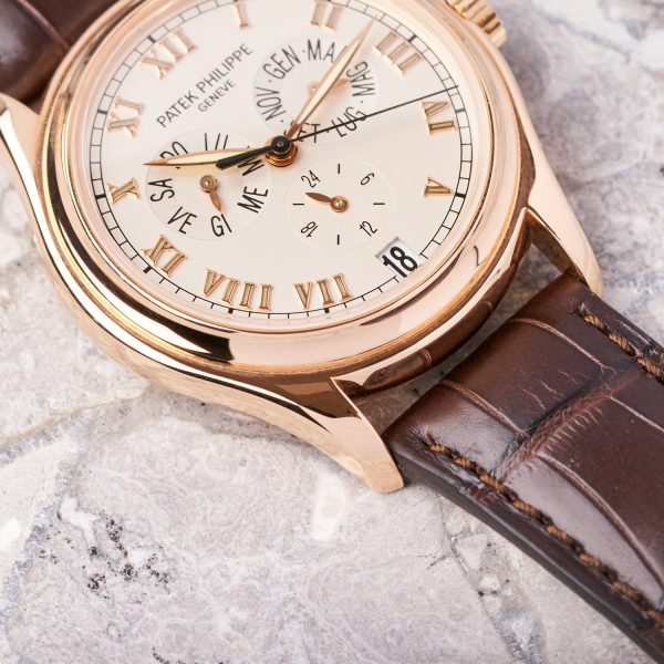 L’attuale Patek Philippe referenza 5035R con complicazione calendario annuale presenta le seguenti caratteristiche:
