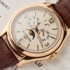 Patek Philippe ha introdotto per la prima volta la complicazione del calendario annuale nel 1996, una complicazione rivoluzionaria per l’azienda che era più funzionale degli orologi con triplo calendario standard, ma più accessibile e meno costosa della complicazione del calendario perpetuo. La referenza 5146 venne introdotta incrementando la dimensione del diametro a 39 mm rendendo estremamente contemporaneo il presente segnatempo.