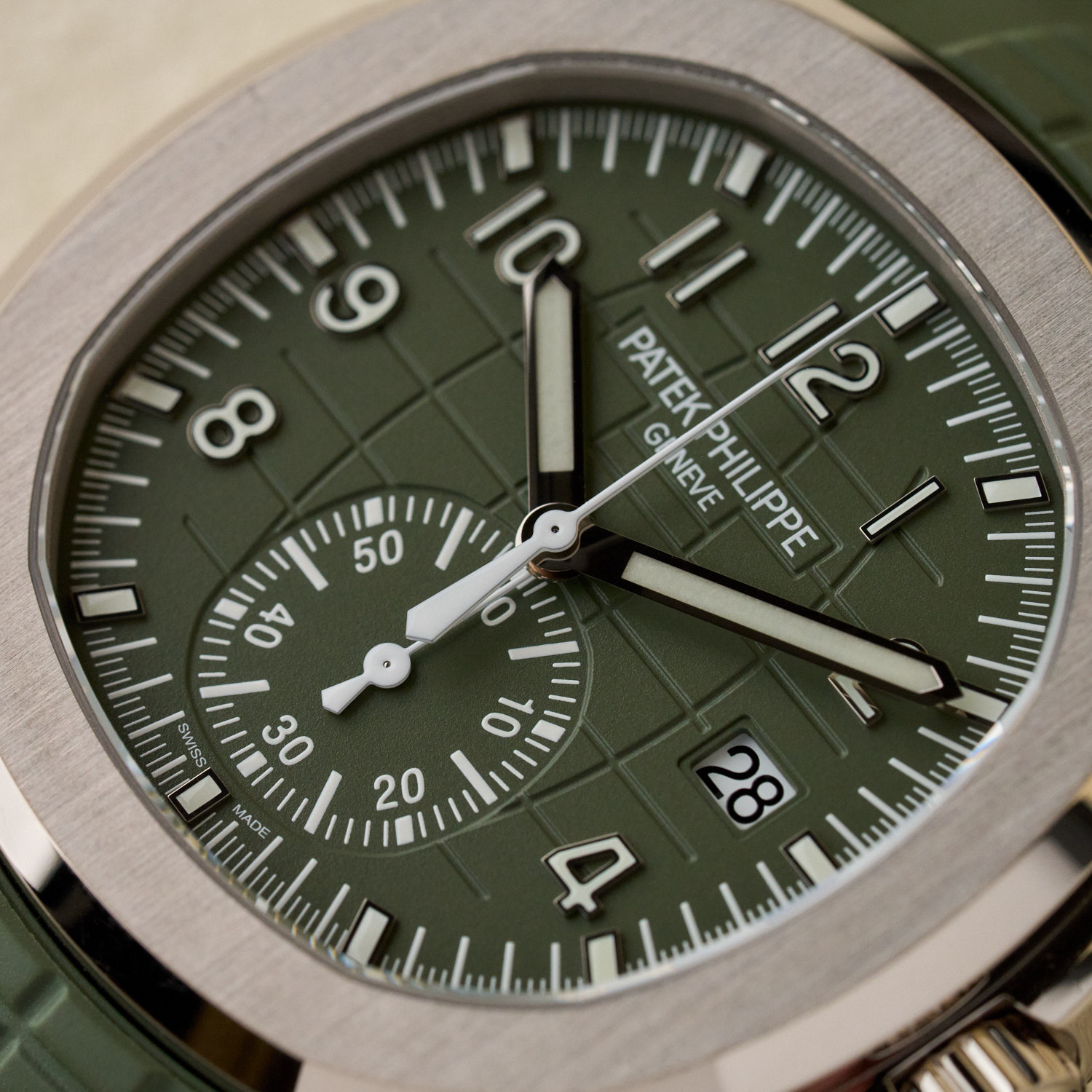 Patek Philippe Aquanaut 5968G – 18K White Gold – Khaki Green Dial – Full Set – Like New