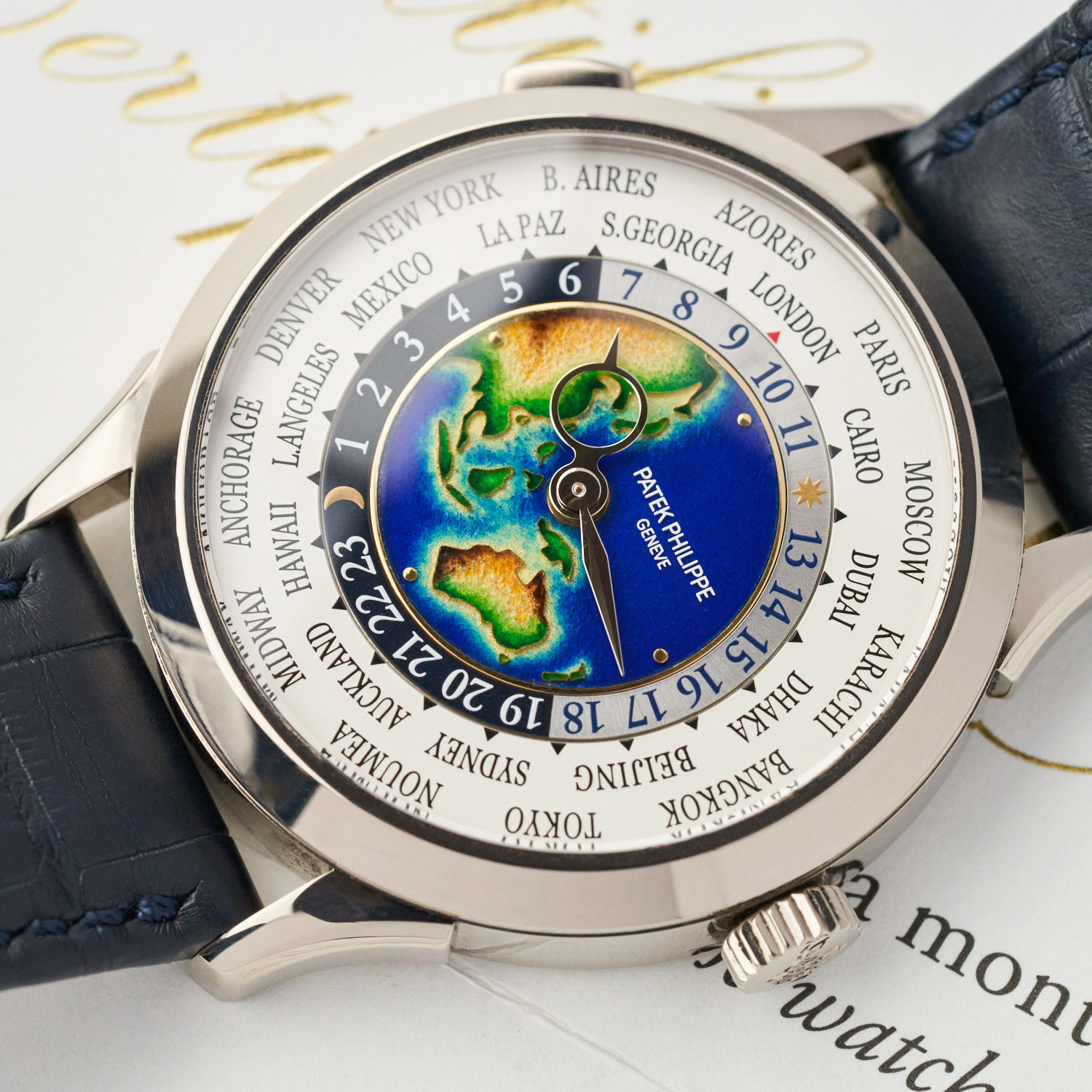 Il modello “Ore Del Mondo” è strettamente associato a Patek Philippe ed è una delle complicazioni distintive della maison. Basato sull’elegante soluzione del famoso orologiaio Louis Cottier (1894-1996), Patek lanciò la referenza 1415 nel 1939, il loro primo orologio da polso con ora mondiale (Heures Universelles).