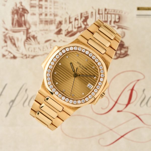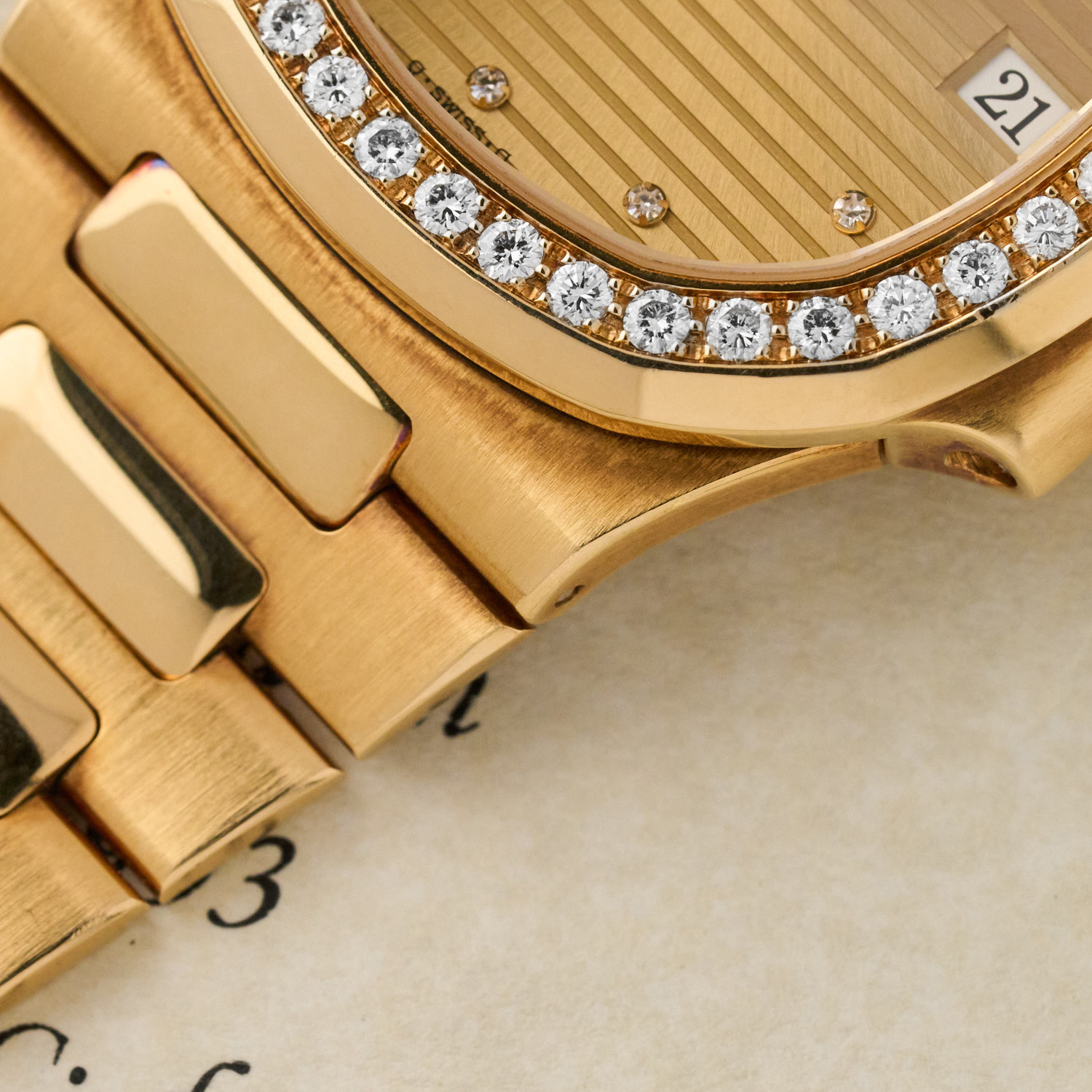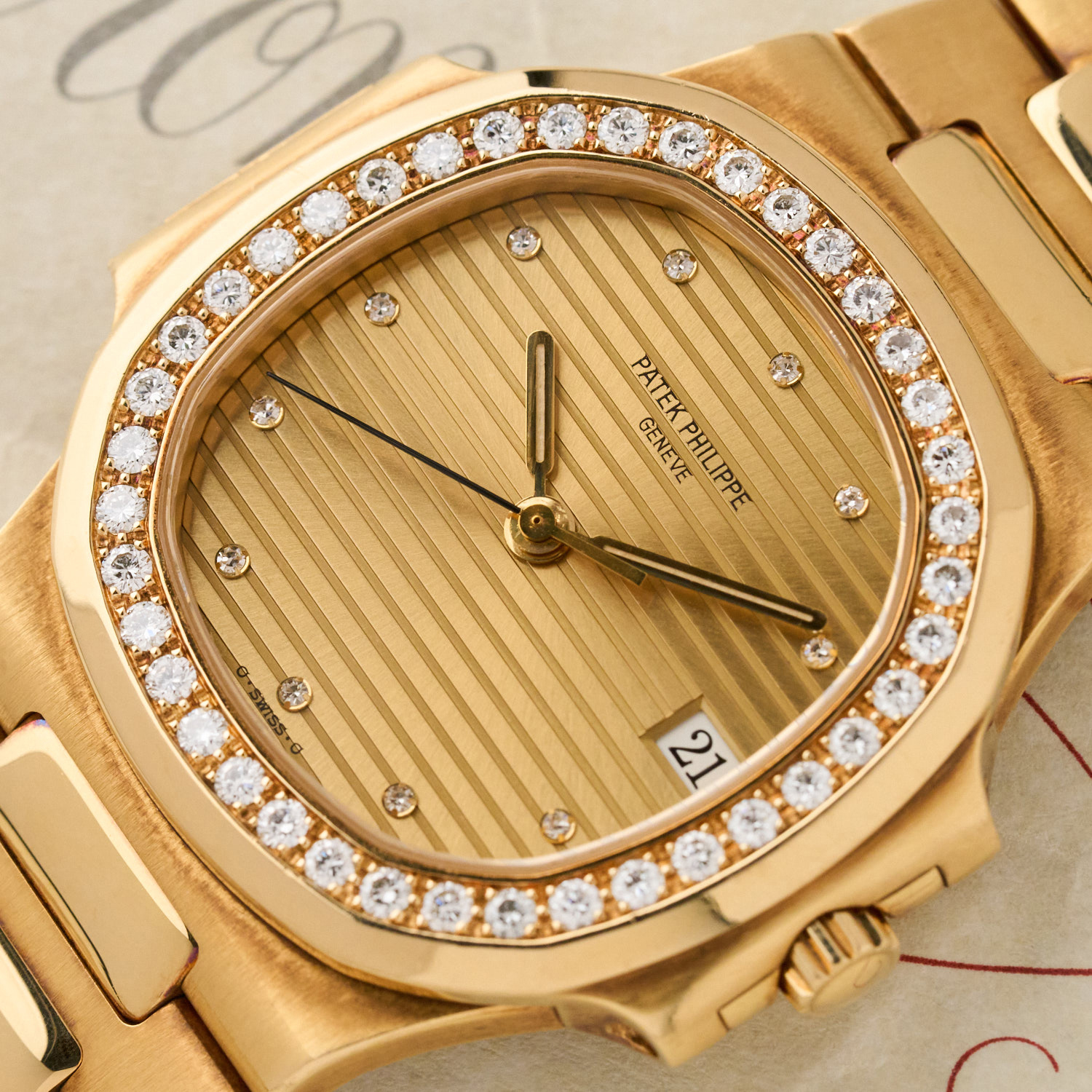 Patek Philippe Nautilus 3800/3 – 18K Yellow Gold – Factory Diamond Set – Unpolished – Extract and Box