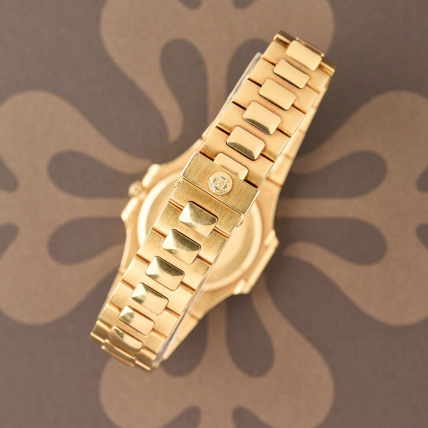 Il Patek Philippe Nautilus 3900 è un orologio sportivo elegante introdotto negli anni ’80 come versione più compatta del celebre Nautilus. Con una cassa in Oro Giallo 18Kt di 33 mm, è caratterizzato dal design iconico a oblò creato da Gérald Genta. Il quadrante presenta un motivo orizzontale distintivo e indici applicati. Equipaggiato con un movimento al quarzo, combina praticità e stile.