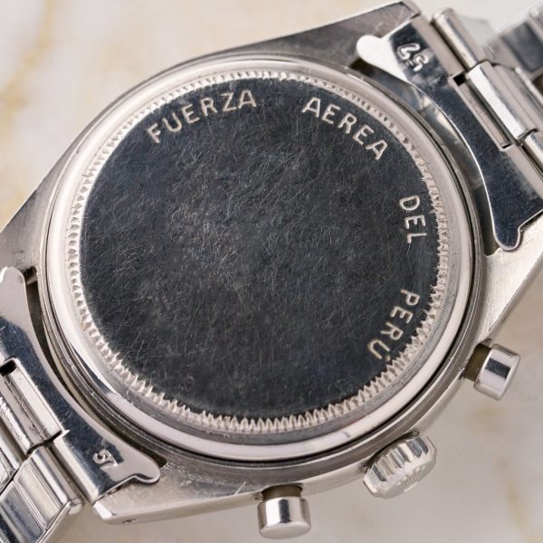 Preservato in eccellenti condizioni estetiche e di funzionamento, il presente esemplare, fu commissionato dal reparto F.A.P. (Fuerza Aerea del Perù) per i propri ufficiali di volo, caratteristica che può essere colta unicamente visionando il fondello ove al suo interno vi è incisa la matricola di assegnazione.