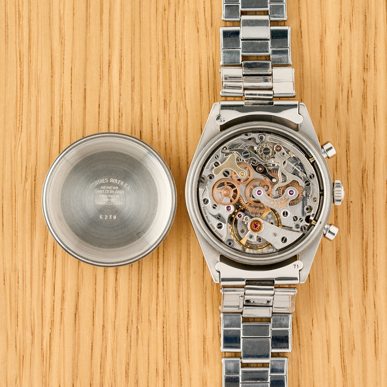 La referenza 6238 è il ponte di unione tra i cronografi Rolex di concezione tradizionale e quelli successivi di concezione moderna. Introdotto agli inizi degli anni 60’, anticipando di qualche anno il primo Daytona, verrà prodotto fino al 1967 quando lascerà completamente il posto nel catalogo alle diverse declinazioni di Daytona: proprio per questo motivo la referenza è conosciuta nel mondo del collezionismo con il soprannome “Pre-Daytona” a rimarcare il ruolo di predecessore del famoso modello. Il 6238 è l’ultimo cronografo prodotto da Rolex ad avere la ghiera liscia e la scala graduata stampata sul quadrante, parlando del quadrante, la referenza 6238 sarà anche l’ultima a montare quadranti monocromatici (Rolex sperimenta proprio con questa referenza i contatori a contrasto, con la rarissima versione “Panda”).
