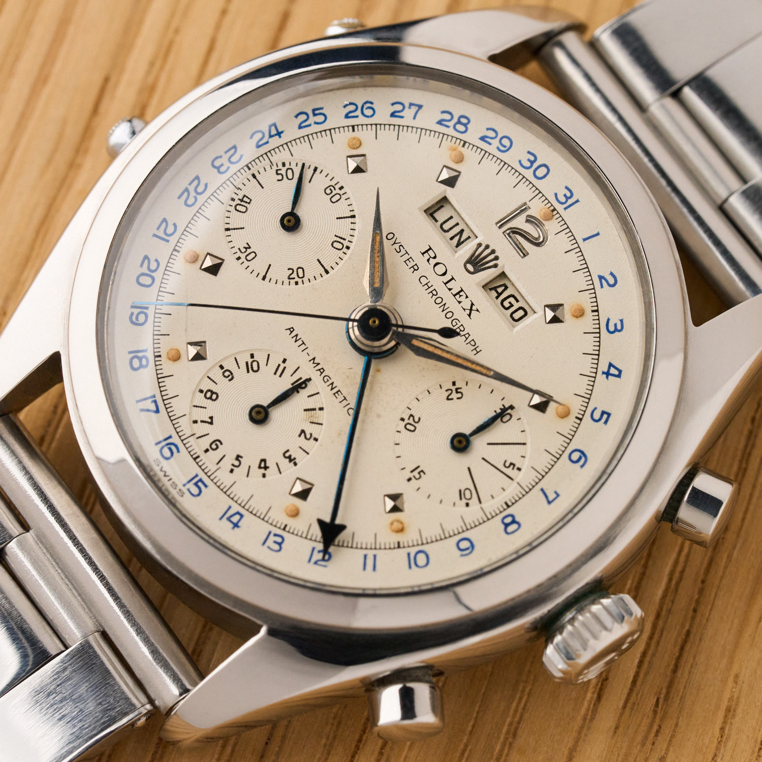 Ultima referenza a unire cronografo e calendario completo prima dell’era Daytona, rappresenta un unicum tecnico ed estetico nella produzione Rolex. Associata a Jean-Claude Killy, celebre sciatore francese noto per aver vinto tre medaglie d’oro alle Olimpiadi invernali del 1968, oggi è considerata una delle espressioni più pure e rare dell’orologeria sportiva da collezione data la produzione estremamente limitata.