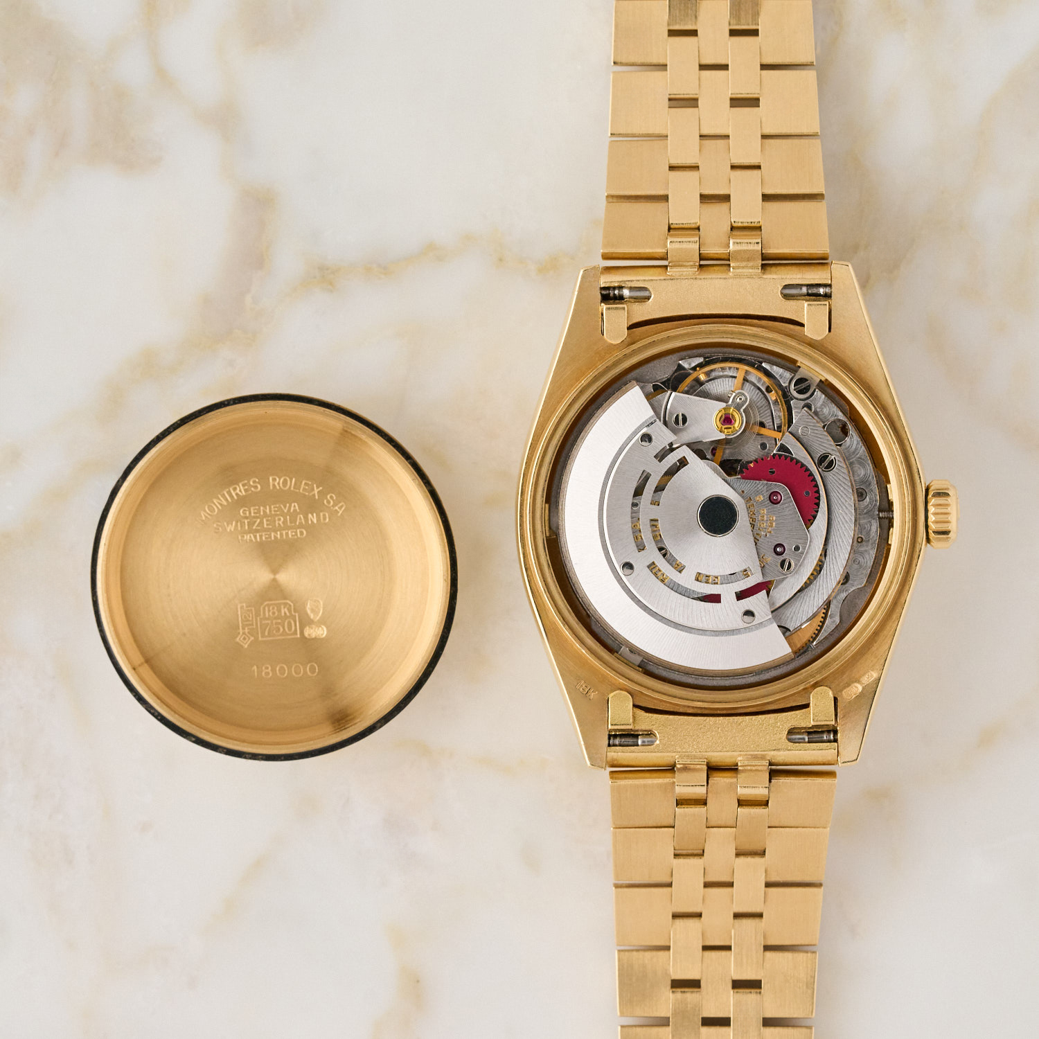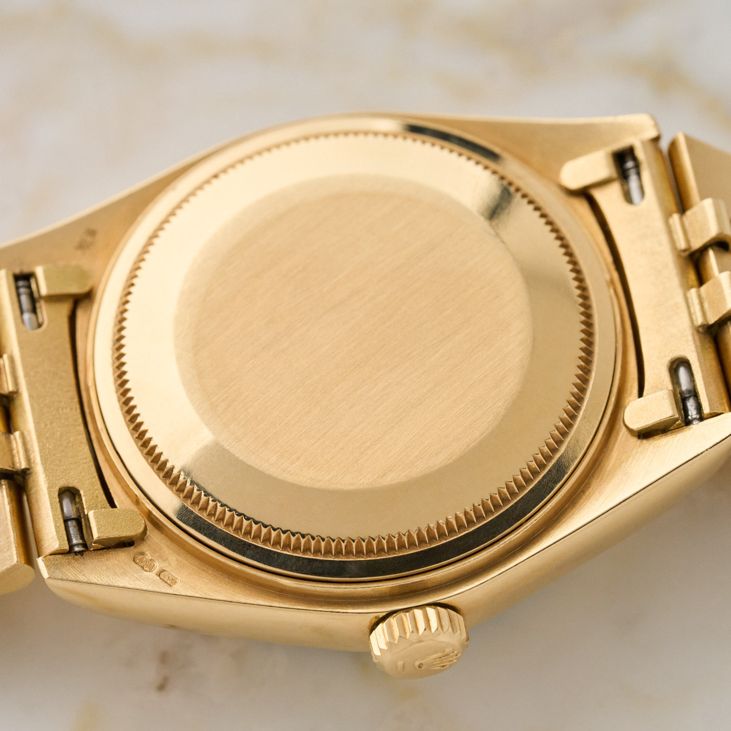 Questo raro esemplare di Rolex Day-Date referenza 18038 vanta le seguenti caratteristiche: