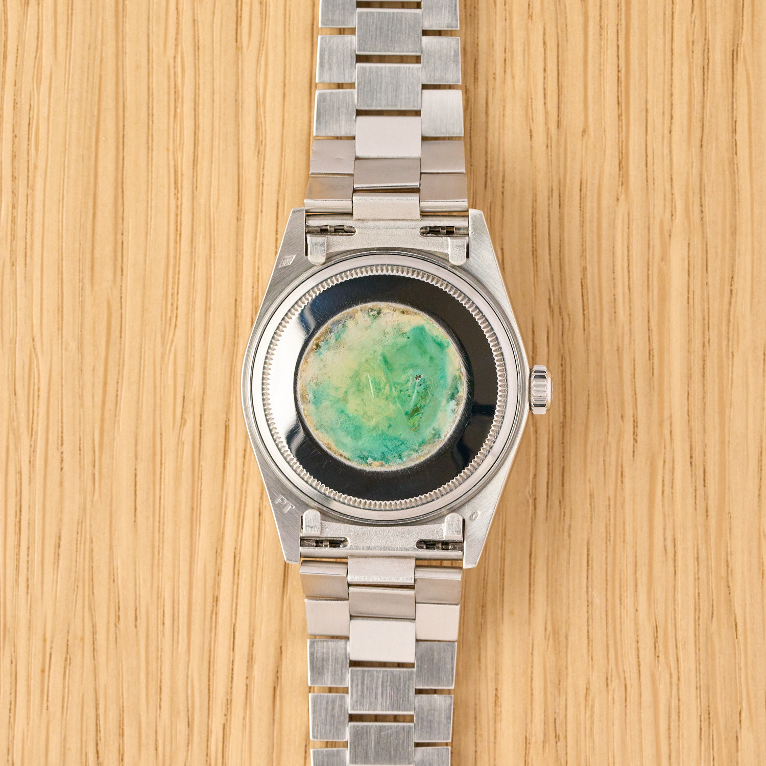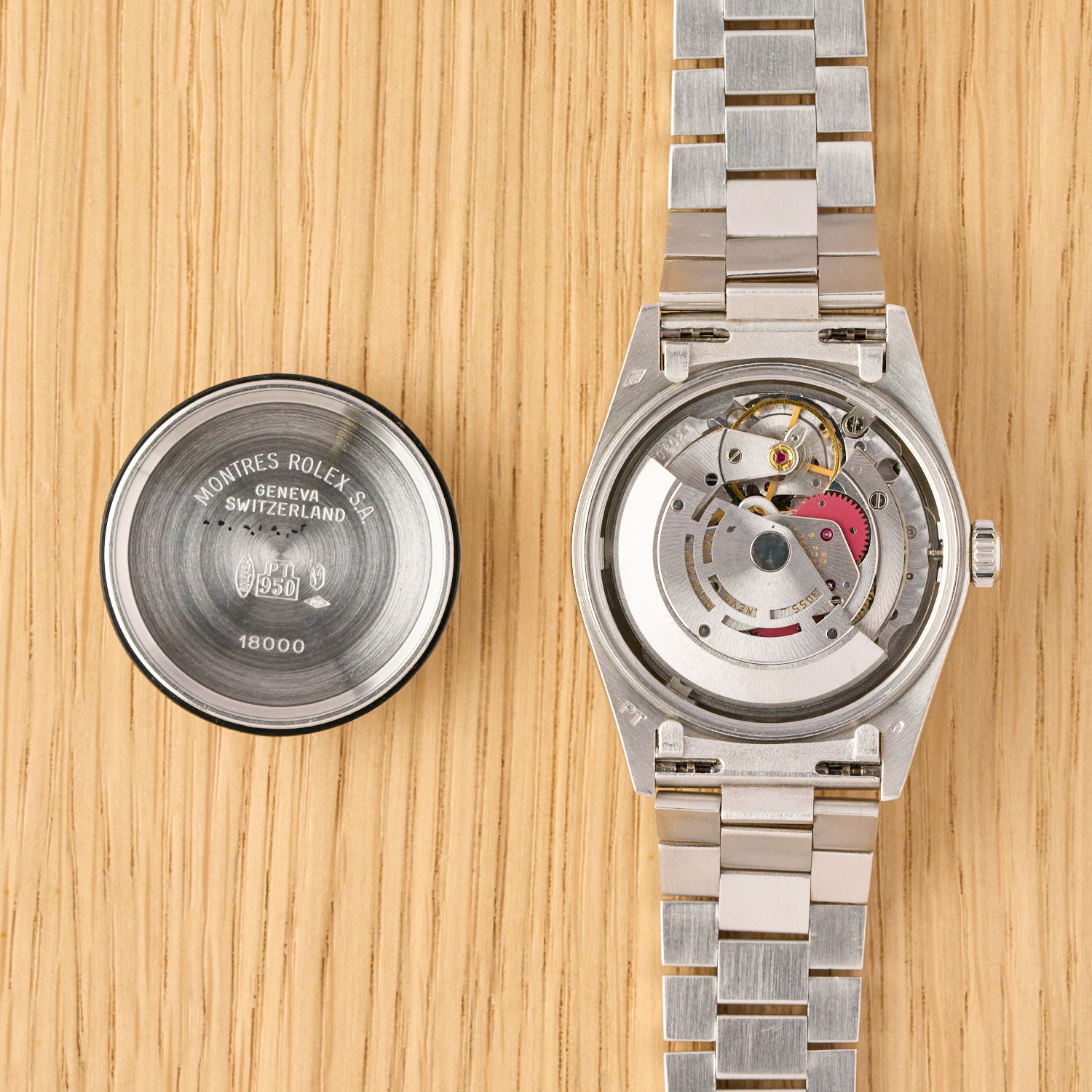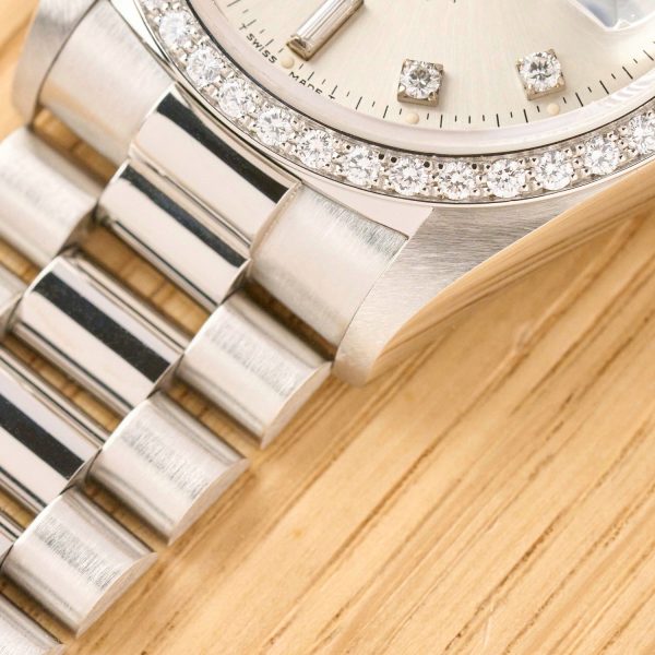 Questo raro esemplare di Rolex Day-Date referenza 18046 vanta le seguenti caratteristiche: