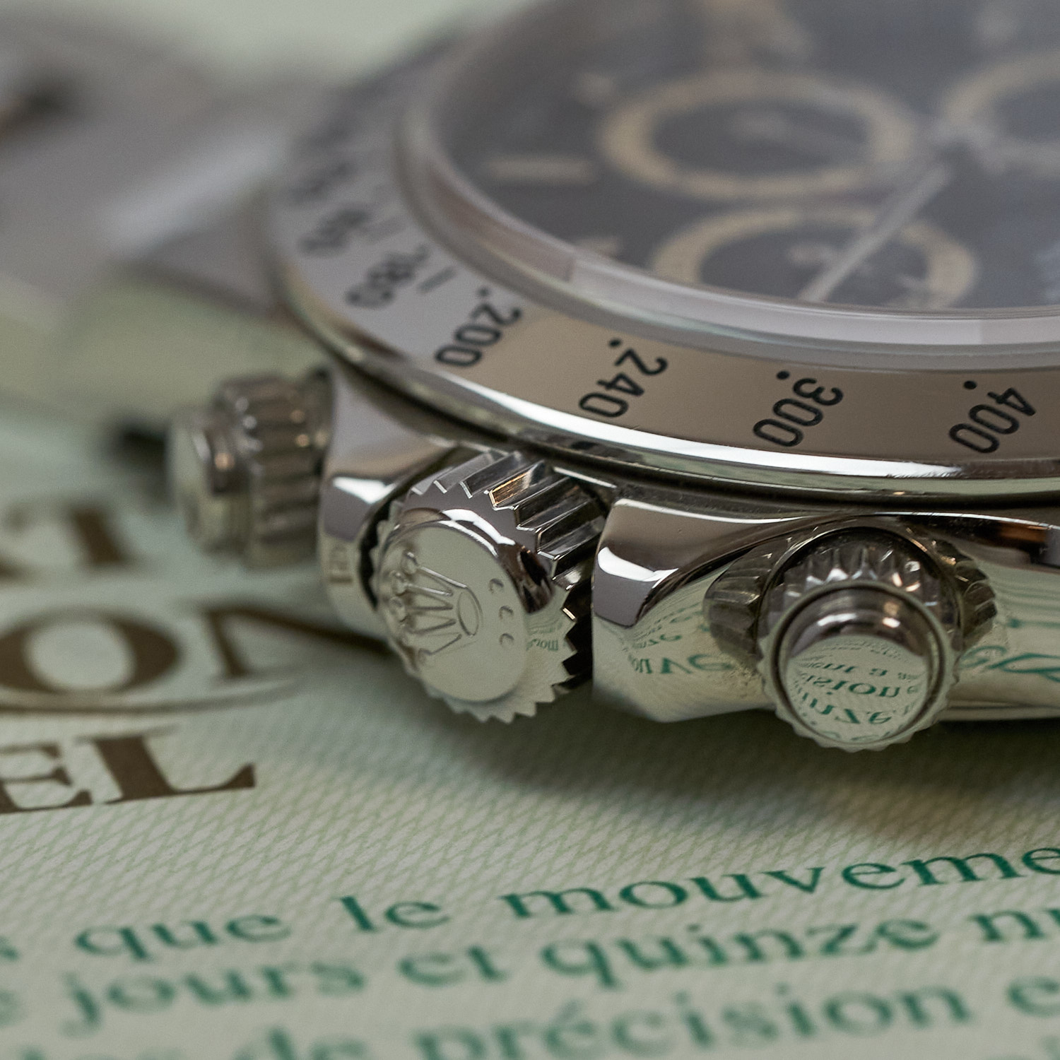 Nel 1988, per celebrare il 25° anniversario del Daytona, Rolex lanciò la referenza 16520 in acciaio inossidabile, insieme alla referenza 16523 in acciaio bicolore e oro, più la referenza 16528 per l’oro giallo. Aumentando le dimensioni della cassa da 37,5 mm a 39,0 mm, la nuovissima collezione Daytona fungeva da collegamento con l’era moderna, per la prima volta materialmente trasformata in qualcosa di diverso dal suo predecessore. Avendo il primo movimento automatico “perpetuo” (un termine che Rolex ama attribuire alla carica automatica) nella famiglia Daytona, il calibro 4030 del 16520 si basa sul movimento El Primero 400 di Zenith. Richiedendo circa quattro anni di ricerca e sviluppo, Rolex ha apportato un adattamento significativo sostituendo più della metà delle parti, per migliorare le prestazioni di questo “motore”.