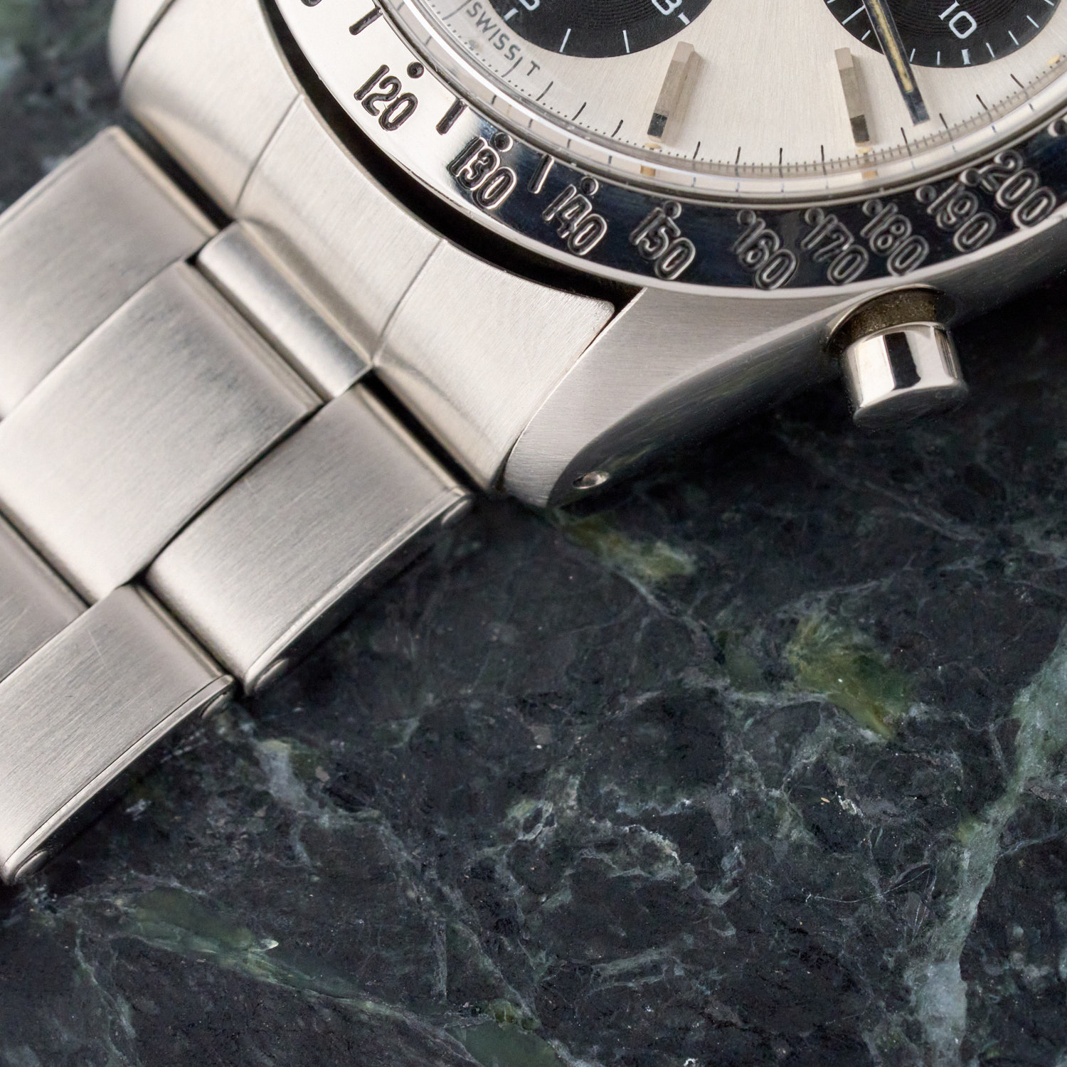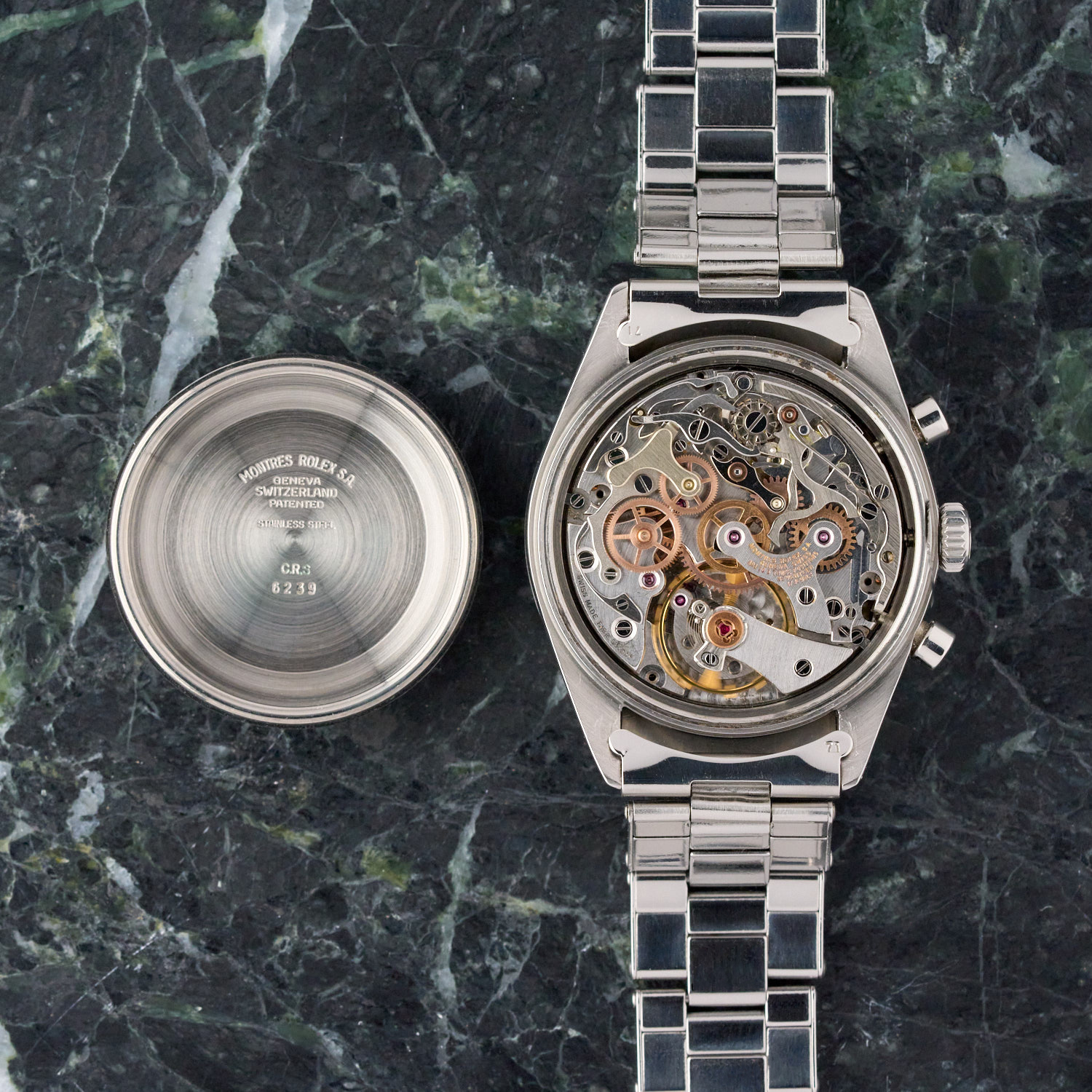 Questo raro esemplare di Rolex Daytona referenza 6239 vanta le seguenti caratteristiche:
