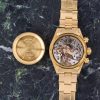 Cassa e bracciale rivettato in Oro Giallo 18Kt