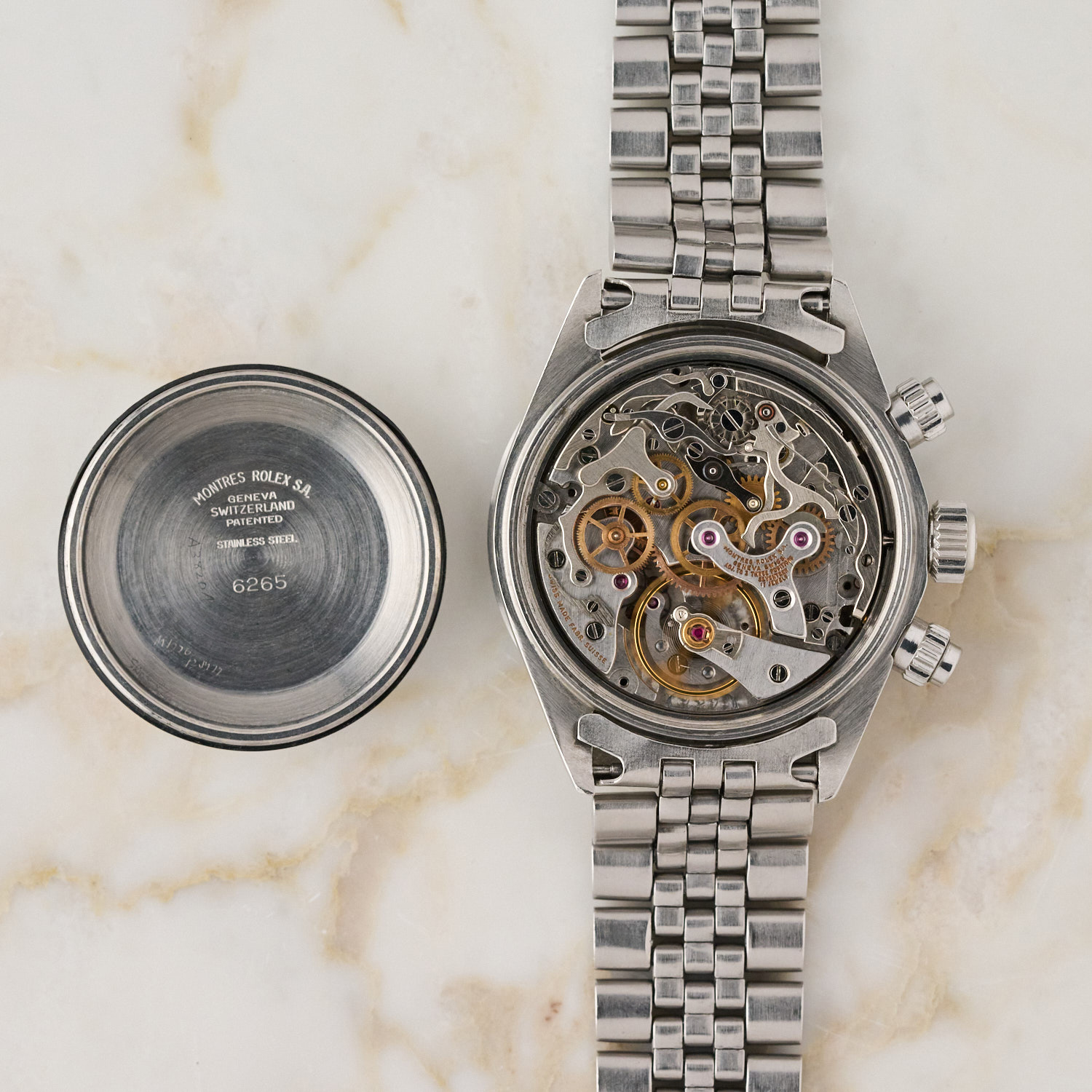 La ghiera del Rolex 6265 era in metallo con scala tachimetrica incisa a differenza di quella del Rolex 6263 che era stampata in bianco su sfondo in bachelite nero.