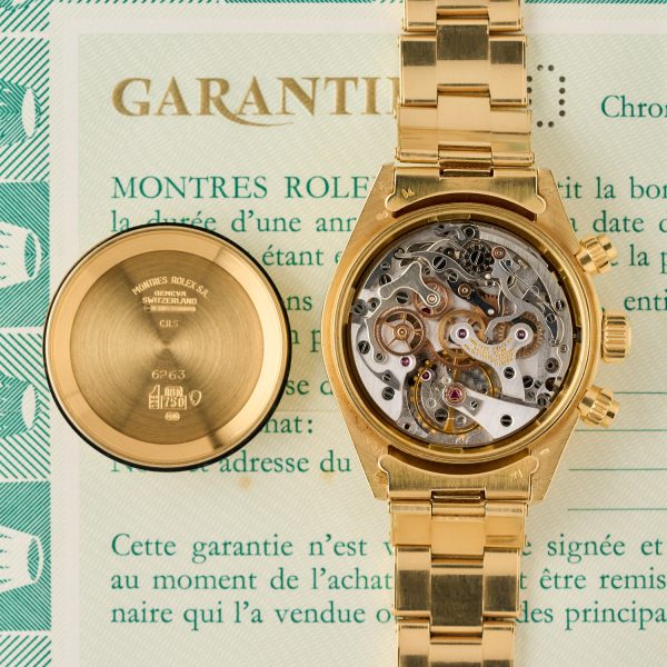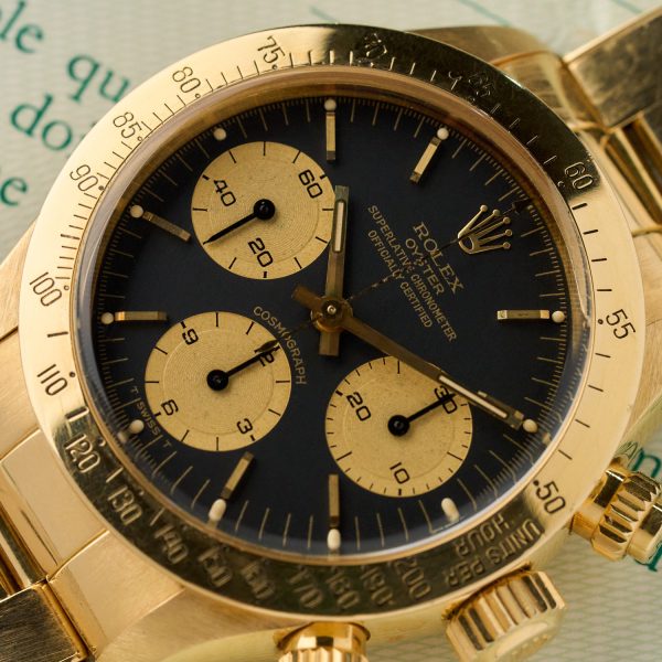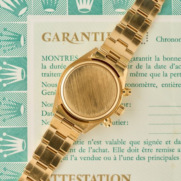 Rolex Daytona 6265 – 18K Yellow Gold – Black Dial – Rolex Punched Warranty