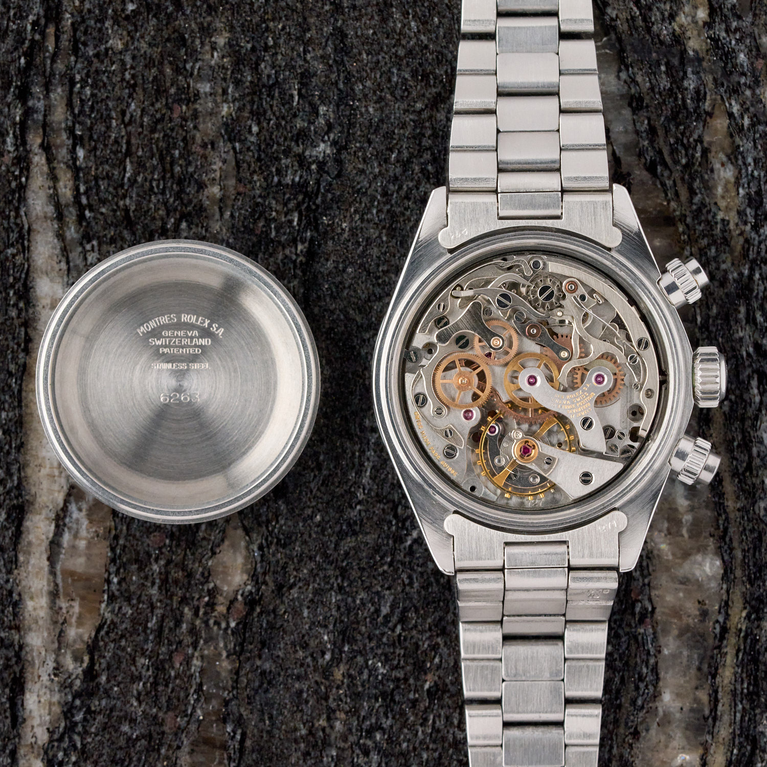 La ghiera del Rolex 6265 era in metallo con scala tachimetrica incisa a differenza di quella del Rolex 6263 che era stampata in bianco su sfondo in bachelite nero.