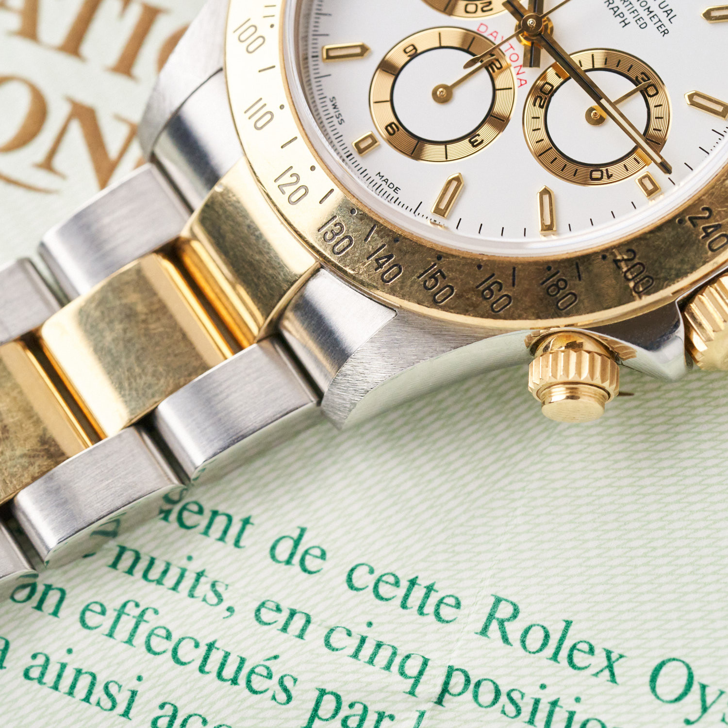 Nel 1988, per celebrare il 25° anniversario del Daytona, Rolex lanciò la referenza 16520 in acciaio inossidabile, insieme alla referenza 16523 in acciaio bicolore e oro, più la referenza 16528 per l’oro giallo. Aumentando le dimensioni della cassa da 37,5 mm a 40,0 mm, la nuovissima collezione Daytona fungeva da collegamento con l’era moderna, per la prima volta materialmente trasformata in qualcosa di diverso dal suo predecessore. Avendo il primo movimento automatico “perpetuo” (un termine che Rolex ama attribuire alla carica automatica) nella famiglia Daytona, il calibro 4030 del 16520 si basa sul movimento El Primero 400 di Zenith. Richiedendo circa quattro anni di ricerca e sviluppo, Rolex ha apportato un adattamento significativo sostituendo più della metà delle parti, per migliorare le prestazioni di questo “motore”.