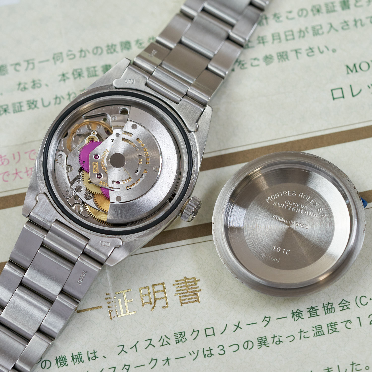 Rolex presentò l’Explorer nel 1953 e introdusse la referenza 1016 intorno al 1959. Le caratteristiche distintive dell’Explorer ref.1016 includono la cassa sottile Oyster e il quadrante nero con indici luminosi, compresi i numeri arabi a ore tre, sei e nove.