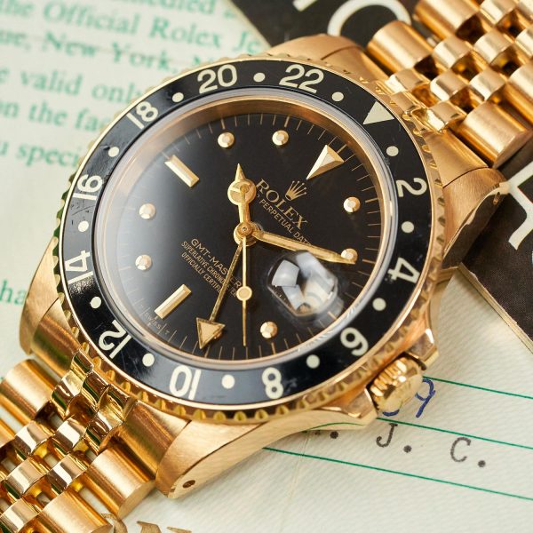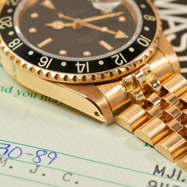 ROLEX GMT-MASTER 16578 QUADRANTE E LUNETTA NERI – BRACCIALE JUBILEE IN ORO GIALLO 18K – GARANZIA ROLEX