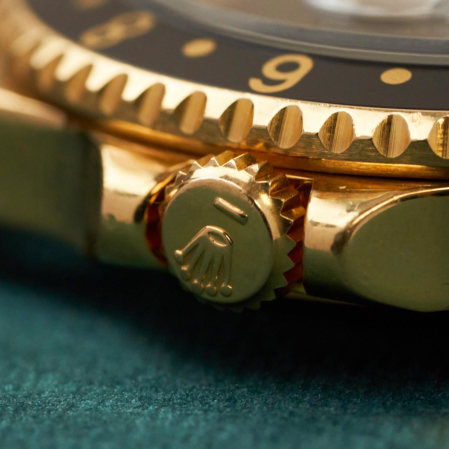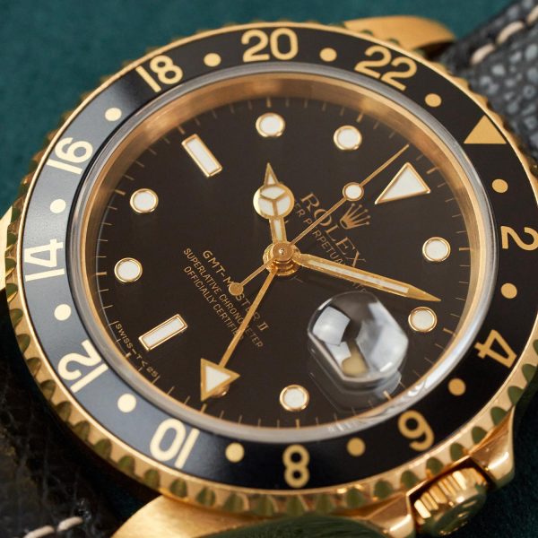 ROLEX GMT-MASTER II 16178 ORO GIALLO 18K QUADRANTE E LUNETTA NERI INDICI BICCHIERINI