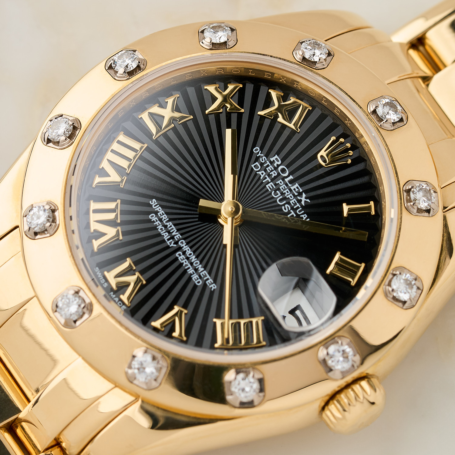 Rolex Lady-Datejust Pearlmaster 81318 – Black Roman Dial – Excellent Conditions – Rolex Warranty
